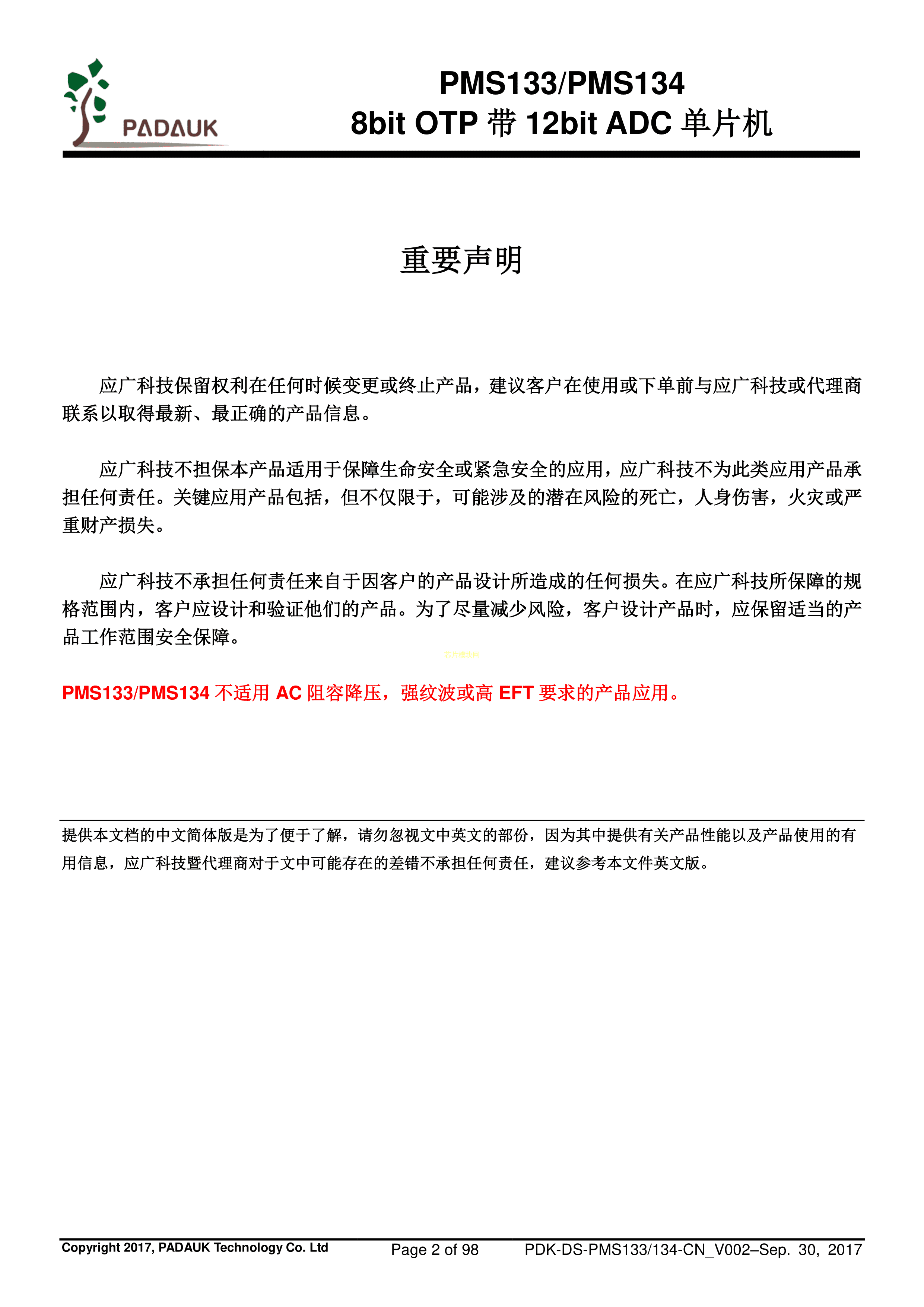 PMS134-SS24数据手册SSOP-24封装PADAUK(应广)PDF规格书,中英文下载