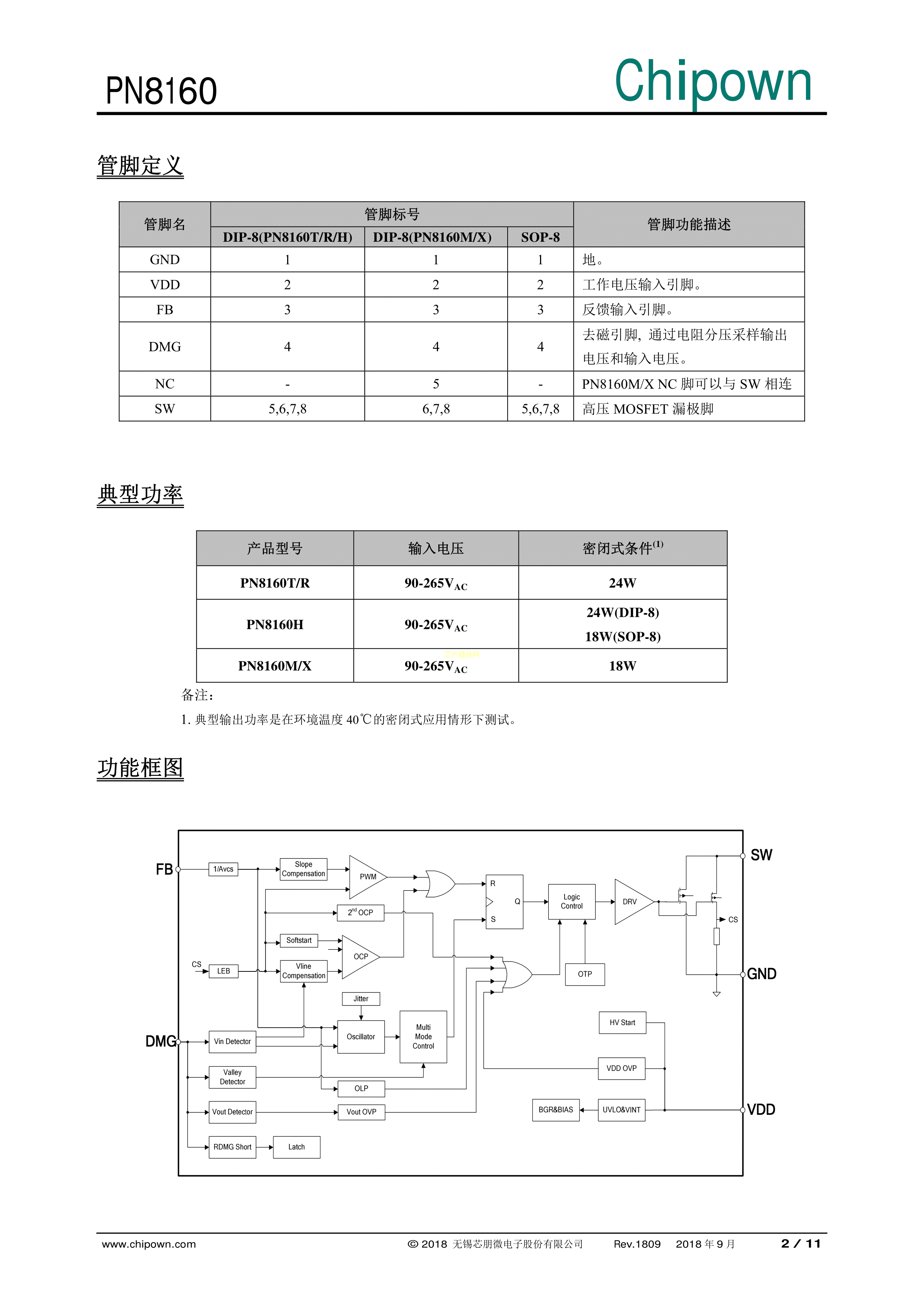 PN8160NEC-T1T数据手册DIP-8封装chipown(芯朋微电子)PDF规格书,中英文下载