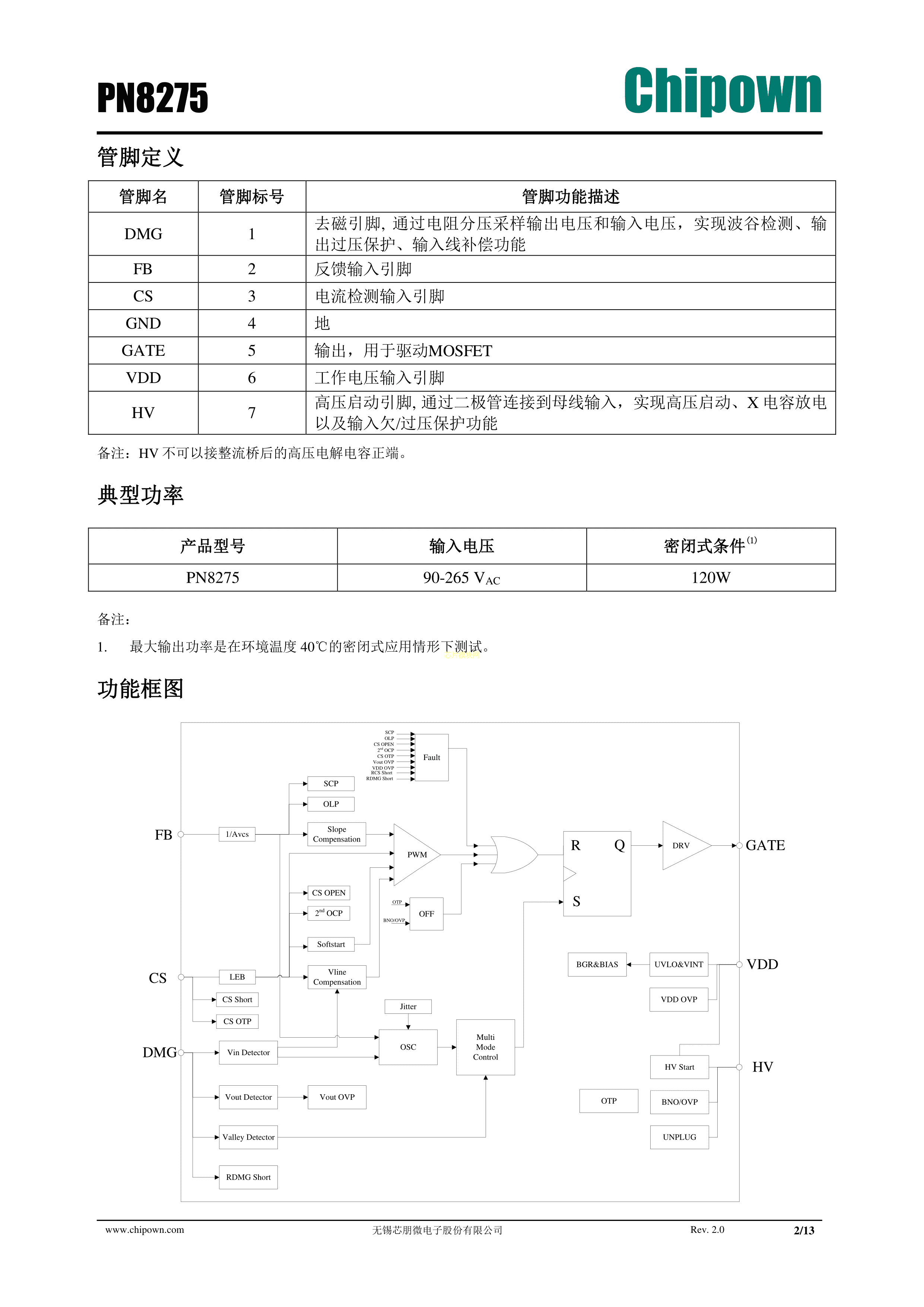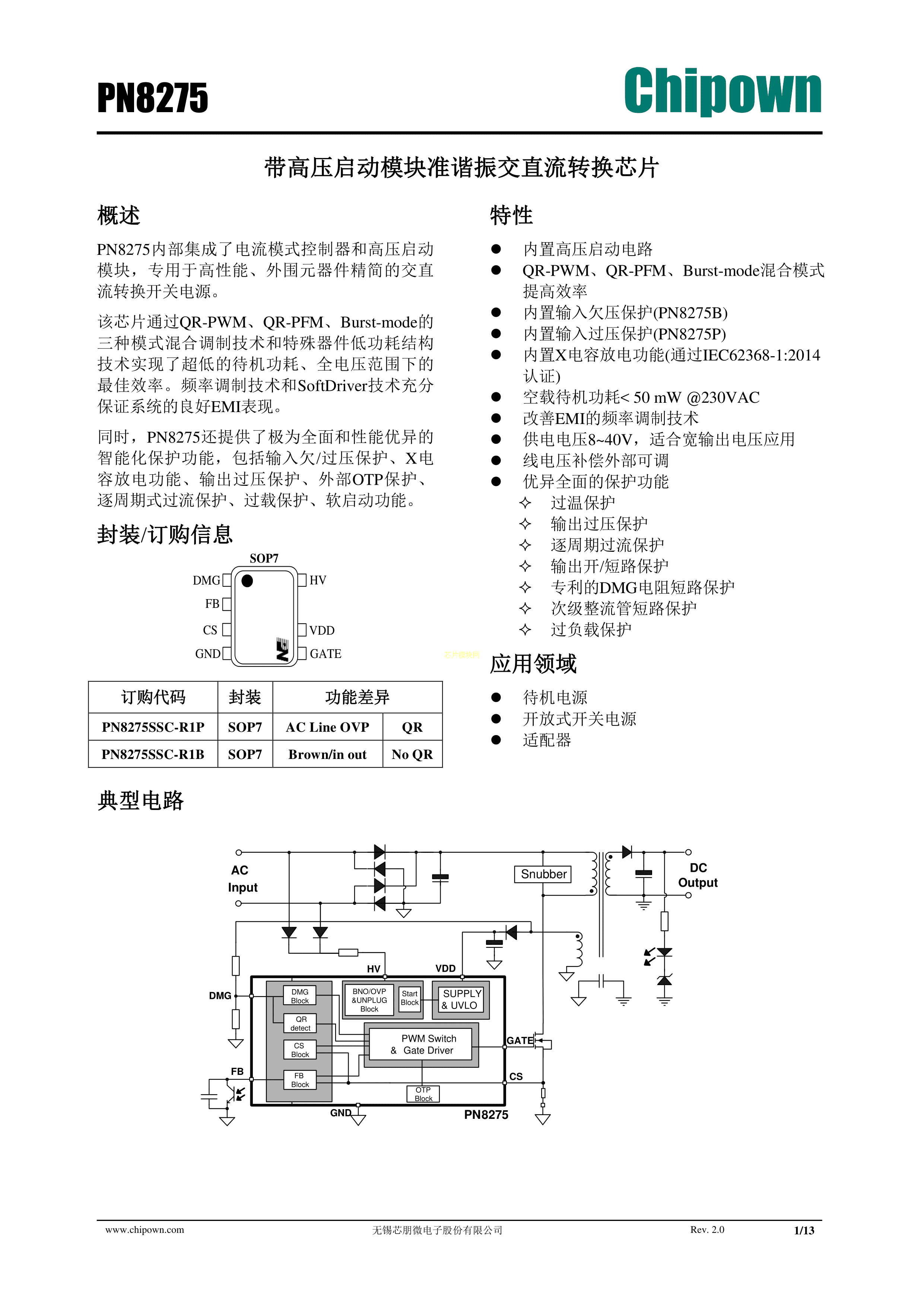 PN8275SSC-R1B数据手册SOP-7封装chipown(芯朋微电子)PDF规格书,中英文下载