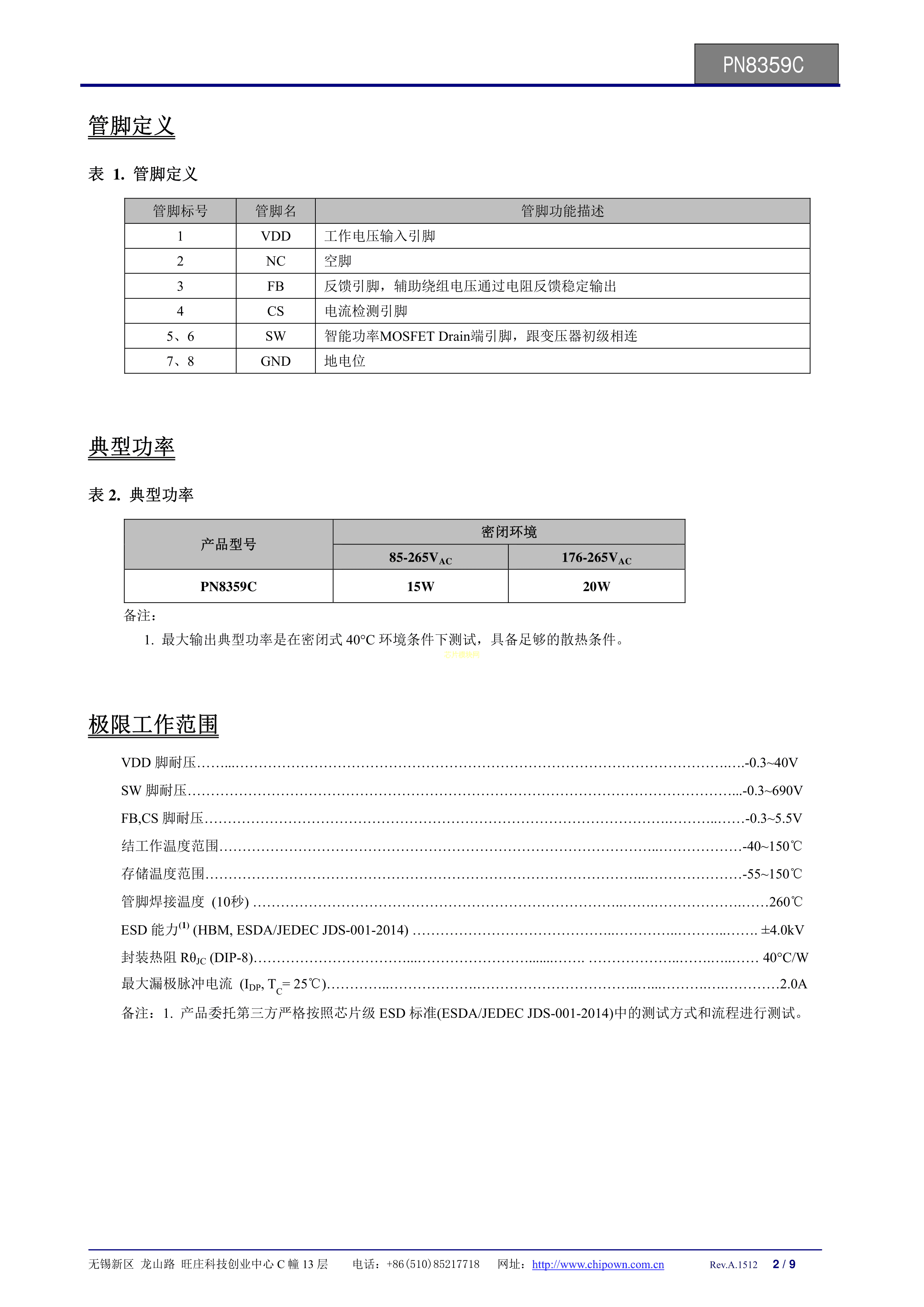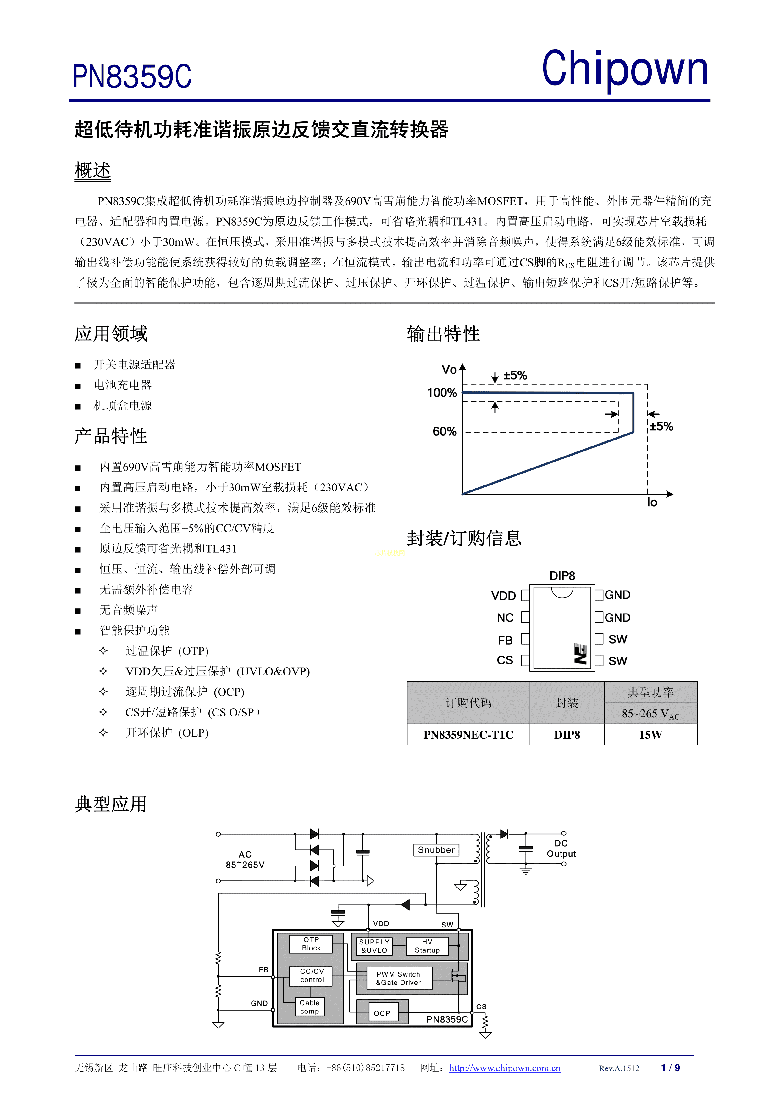 PN8359NEC-T1C数据手册DIP-8封装chipown(芯朋微电子)PDF规格书,中英文下载