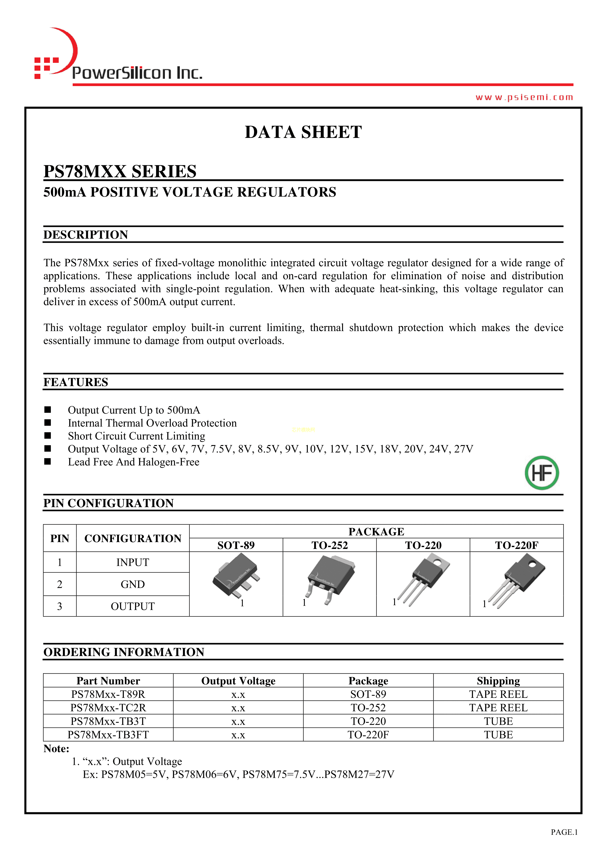 PS78M05数据手册TO-252封装PSI(宝力芯)PDF规格书,中英文下载