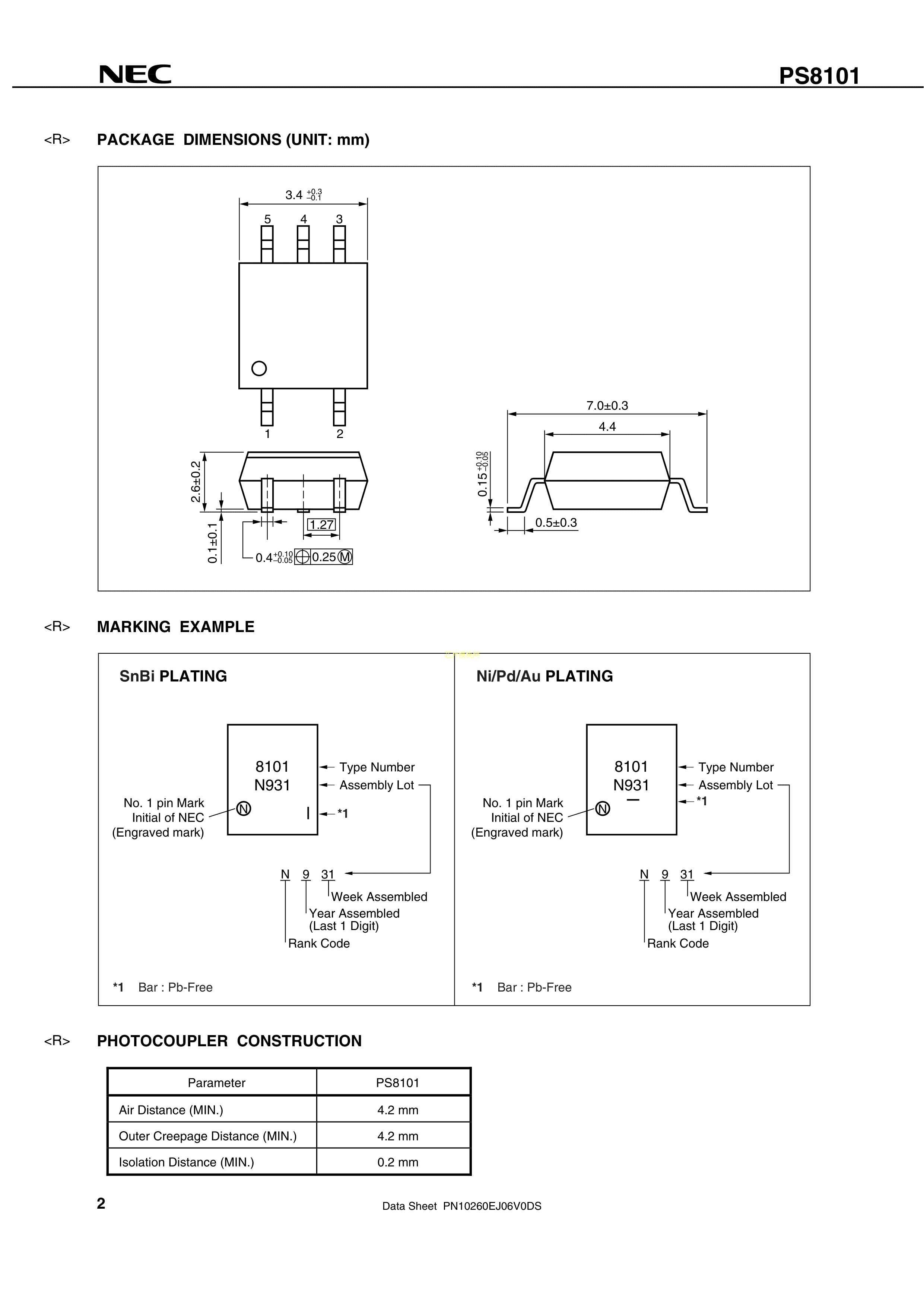 PS8101-F3-K-AX数据手册SOP-5封装NEC(日电电子)PDF规格书,中英文下载