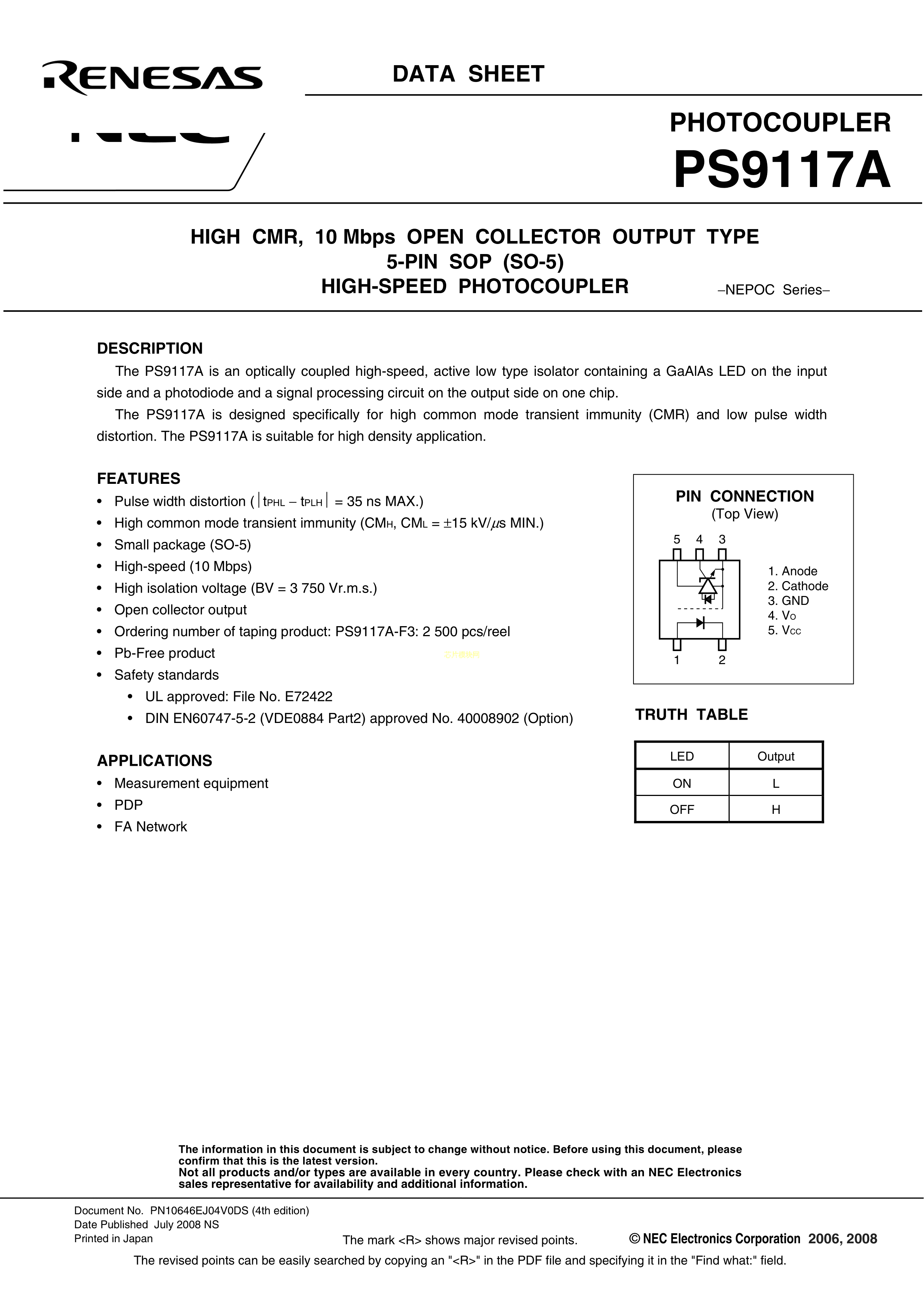 PS9117A-F3-AX数据手册SO-5封装RENESAS(瑞萨)-IDTPDF规格书,中英文下载