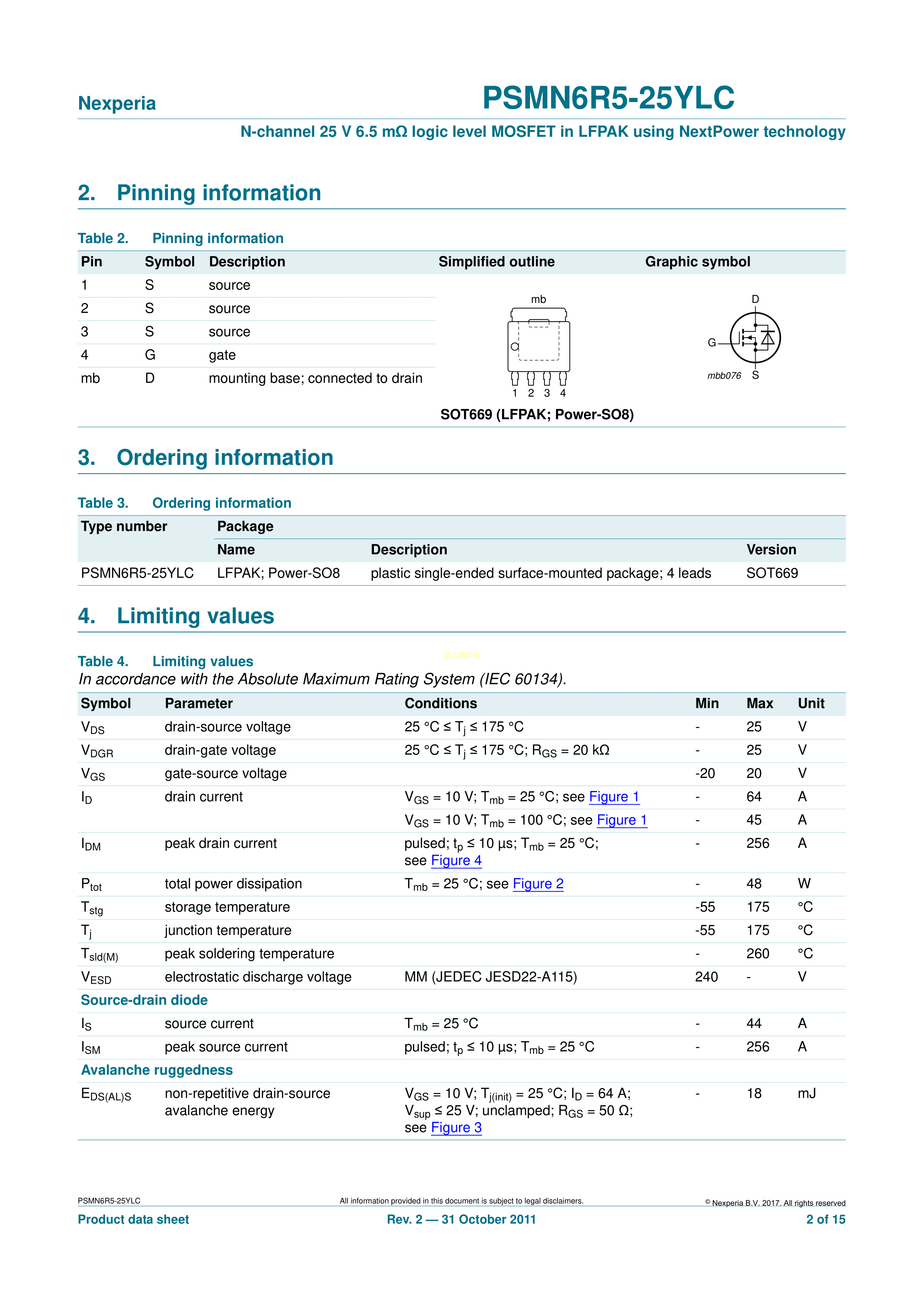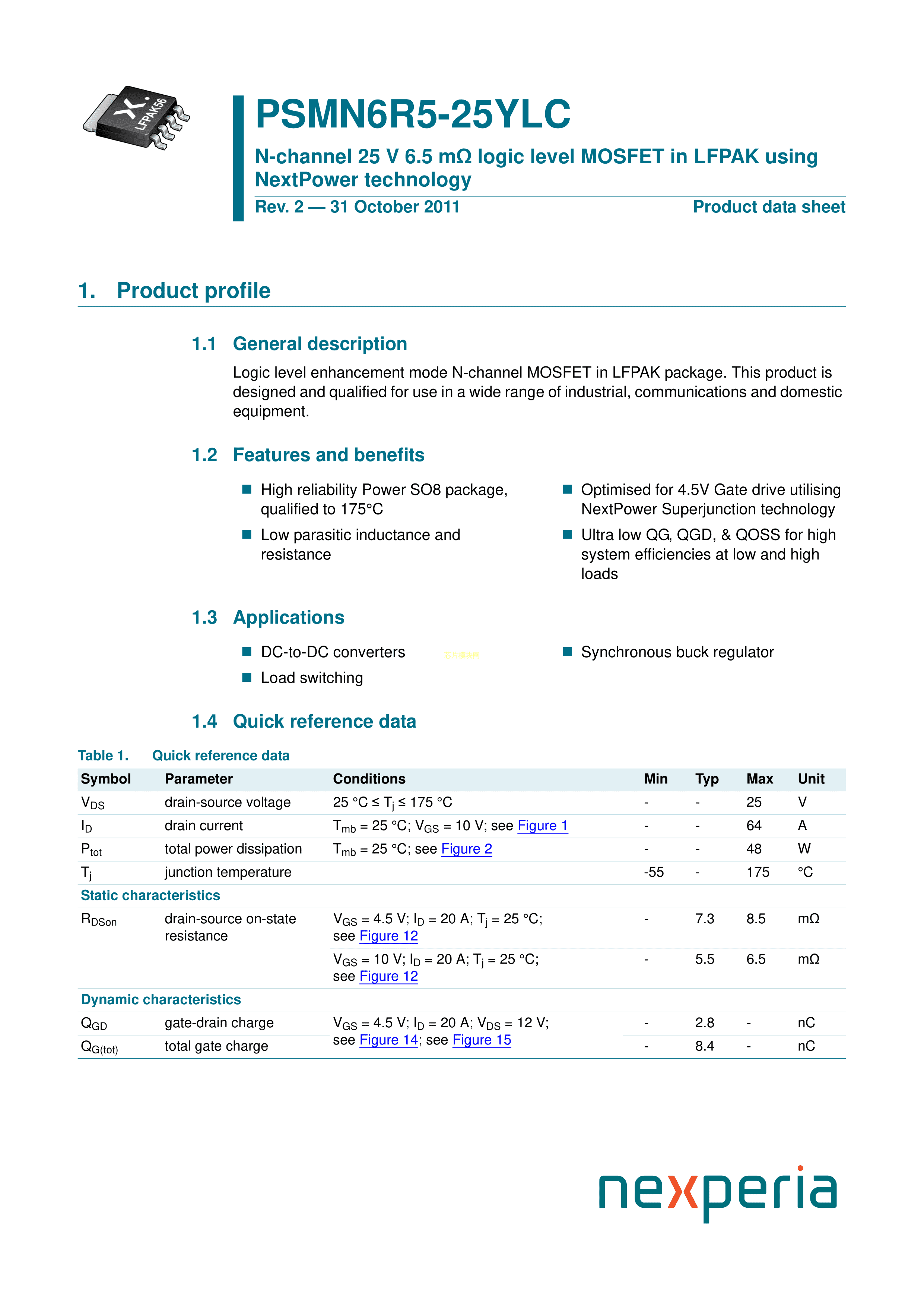 PSMN6R5-25YLC115数据手册SOT-669封装Nexperia(安世)PDF规格书,中英