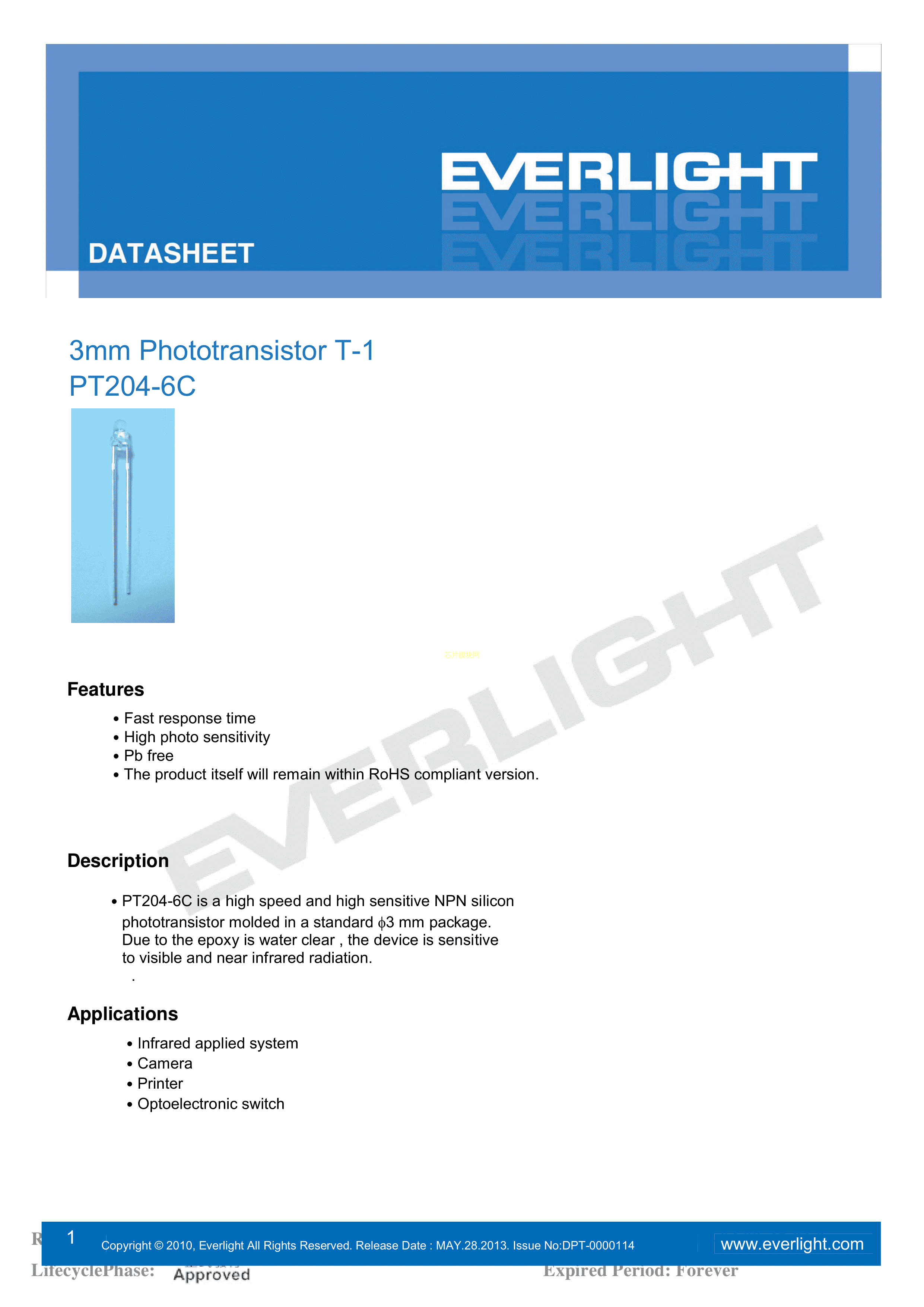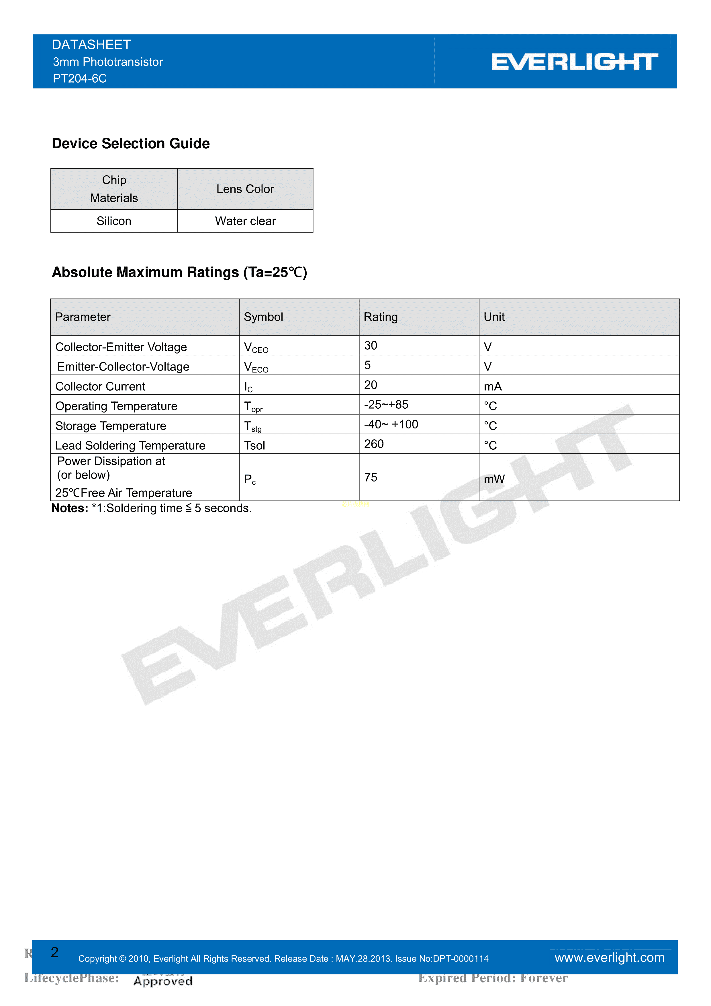 PT204-6C数据手册3mm封装EVERLIGHT(台湾亿光)PDF规格书,中英文下载