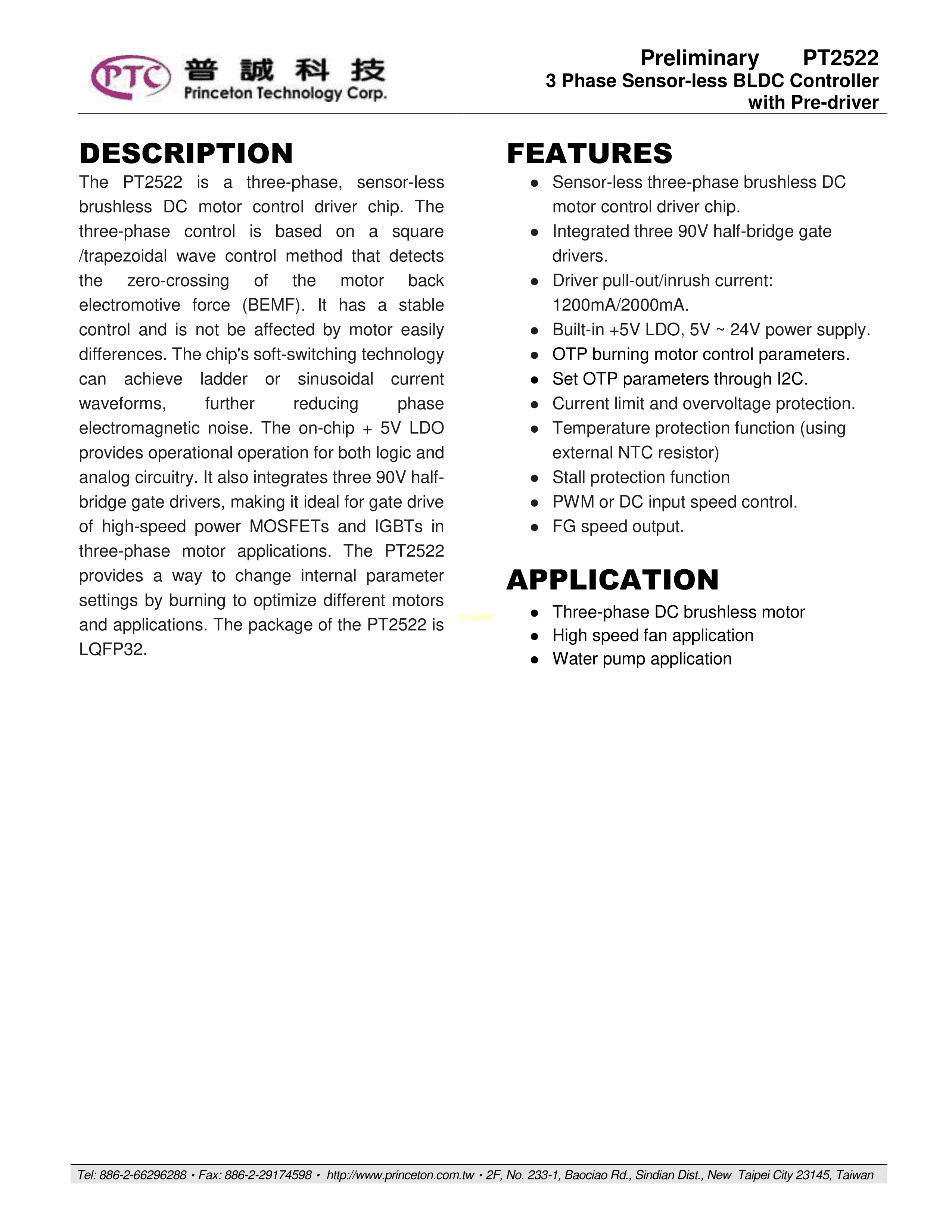 PT2522数据手册QFN-32封装PTC(台湾普诚)PDF规格书,中英文下载