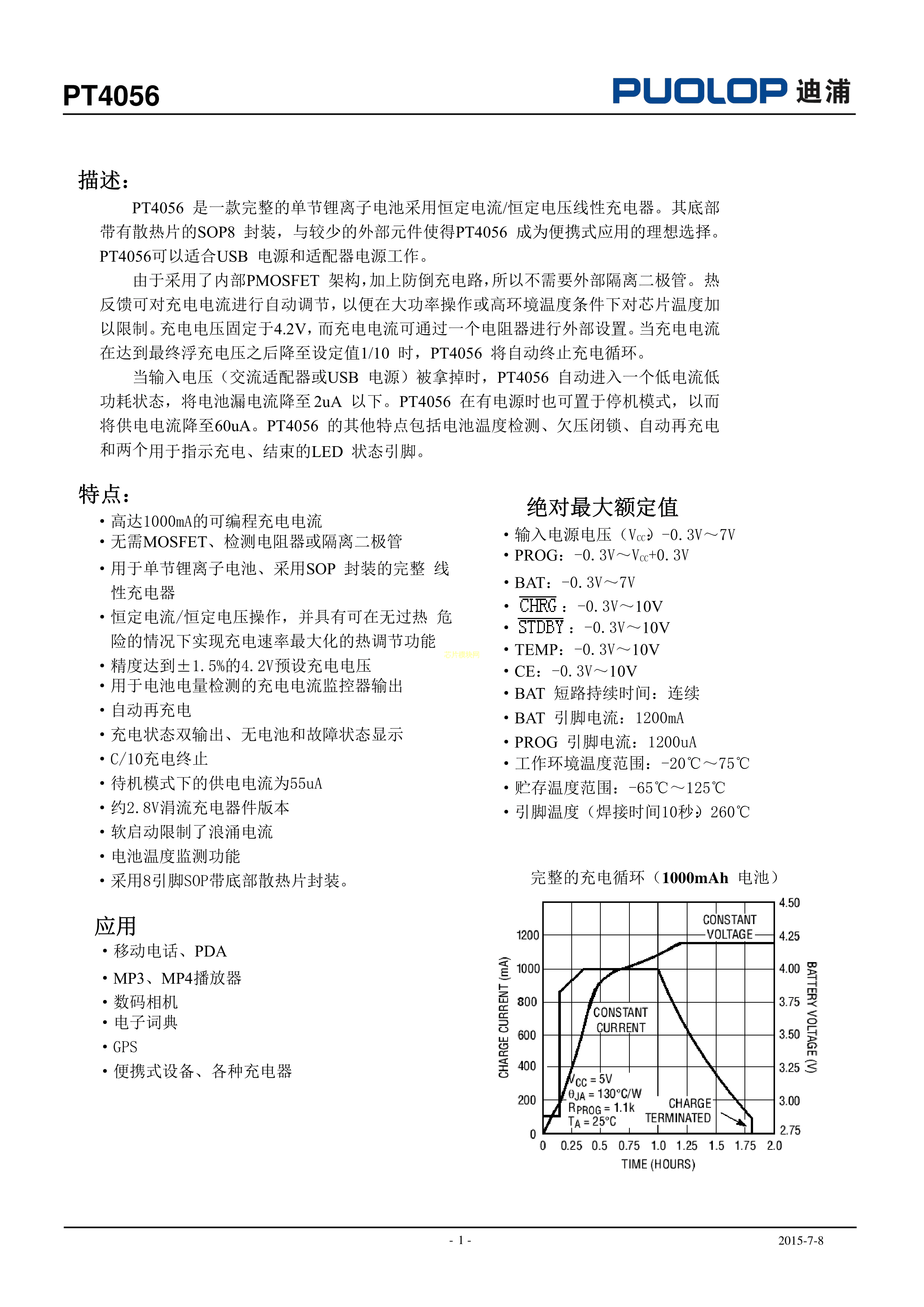 PT4056数据手册ESOP-8封装PUOLOP(迪浦)PDF规格书,中英文下载