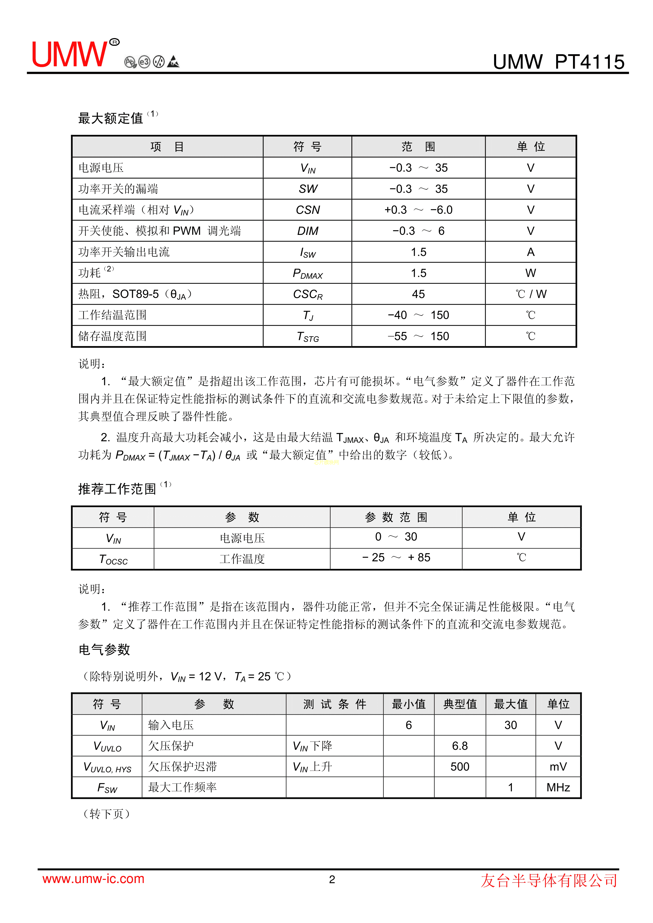 PT4115数据手册SOT-89-5封装UMW(友台半导体)PDF规格书,中英文下载