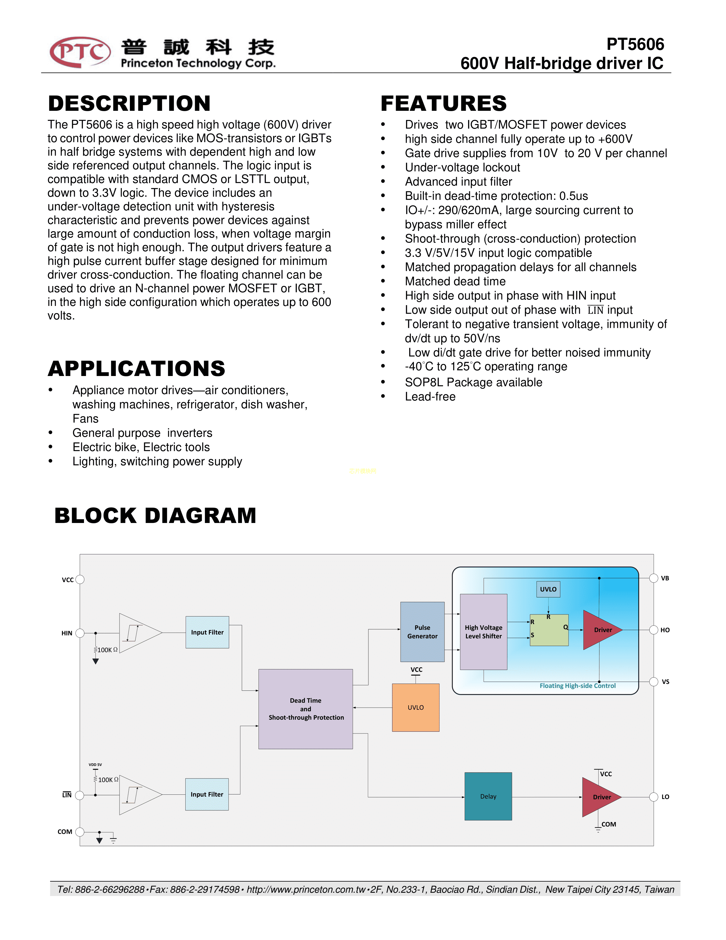 PT5606数据手册SOP-8封装PTC(台湾普诚)PDF规格书,中英文下载