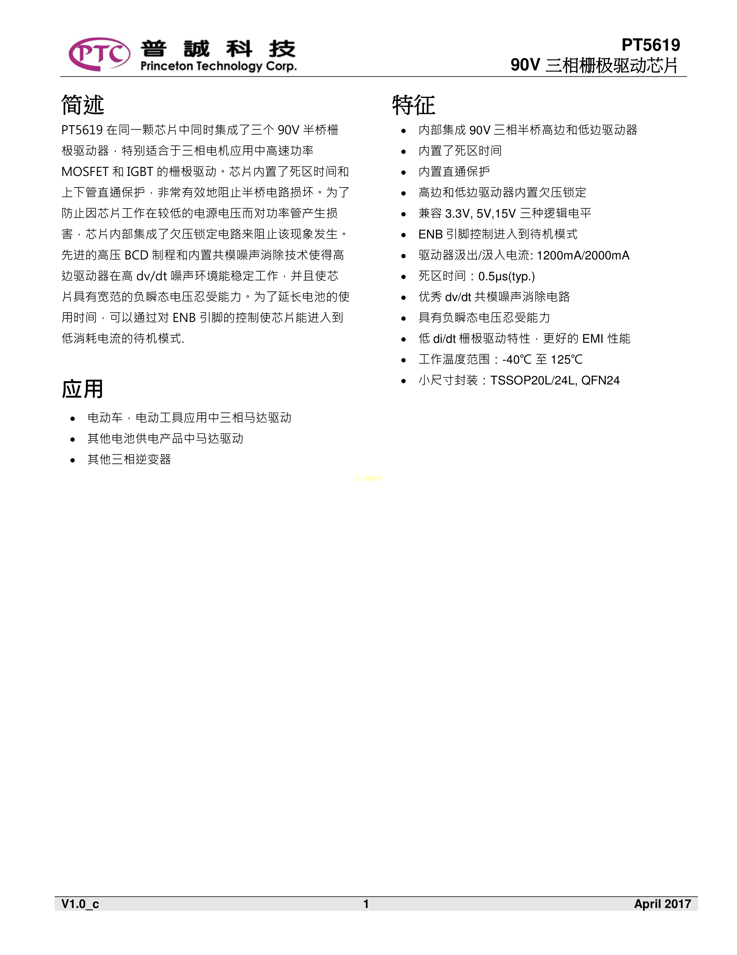 PT5619数据手册TSSOP-20封装PTC(台湾普诚)PDF规格书,中英文下载