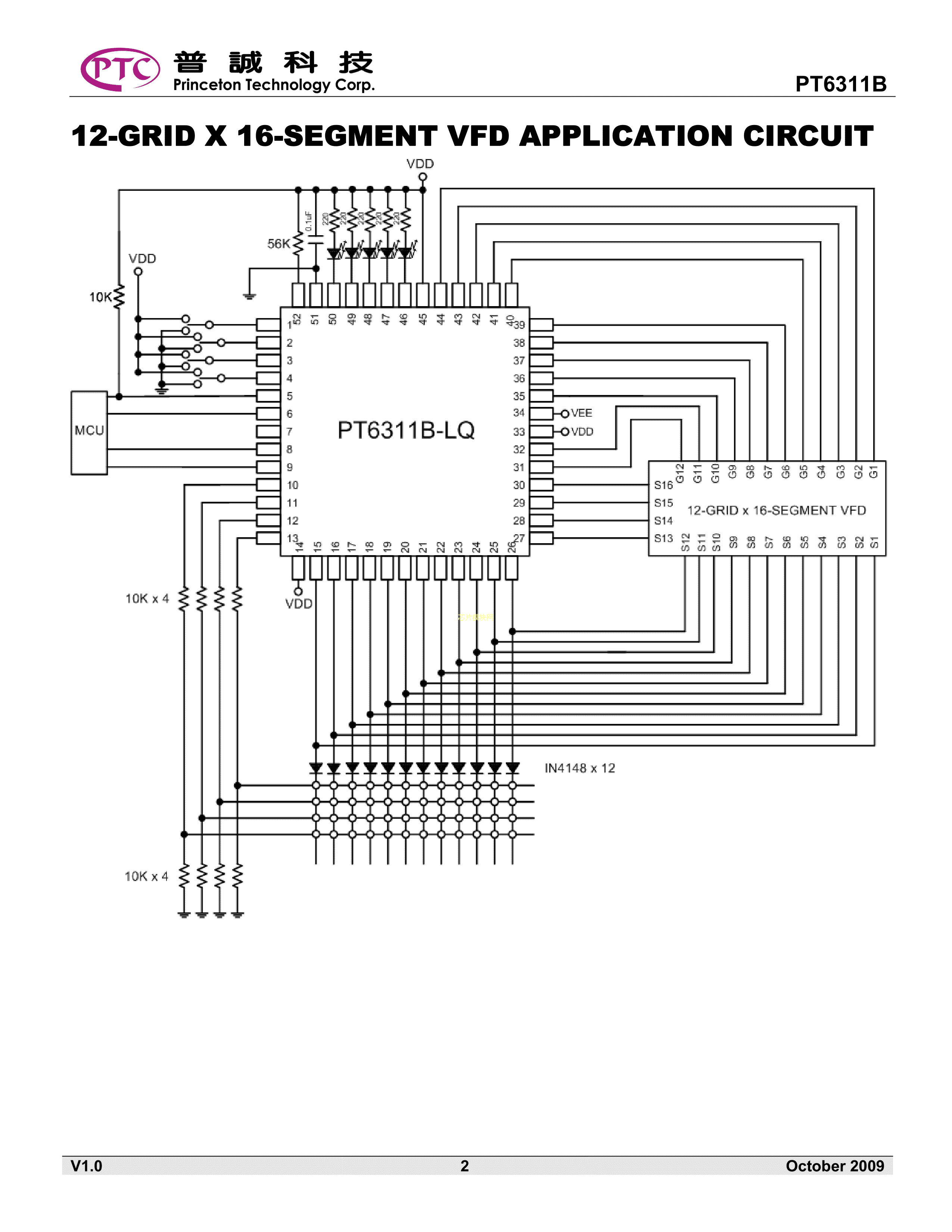 PT6311B数据手册LQFP-52封装PTC(台湾普诚)PDF规格书,中英文下载