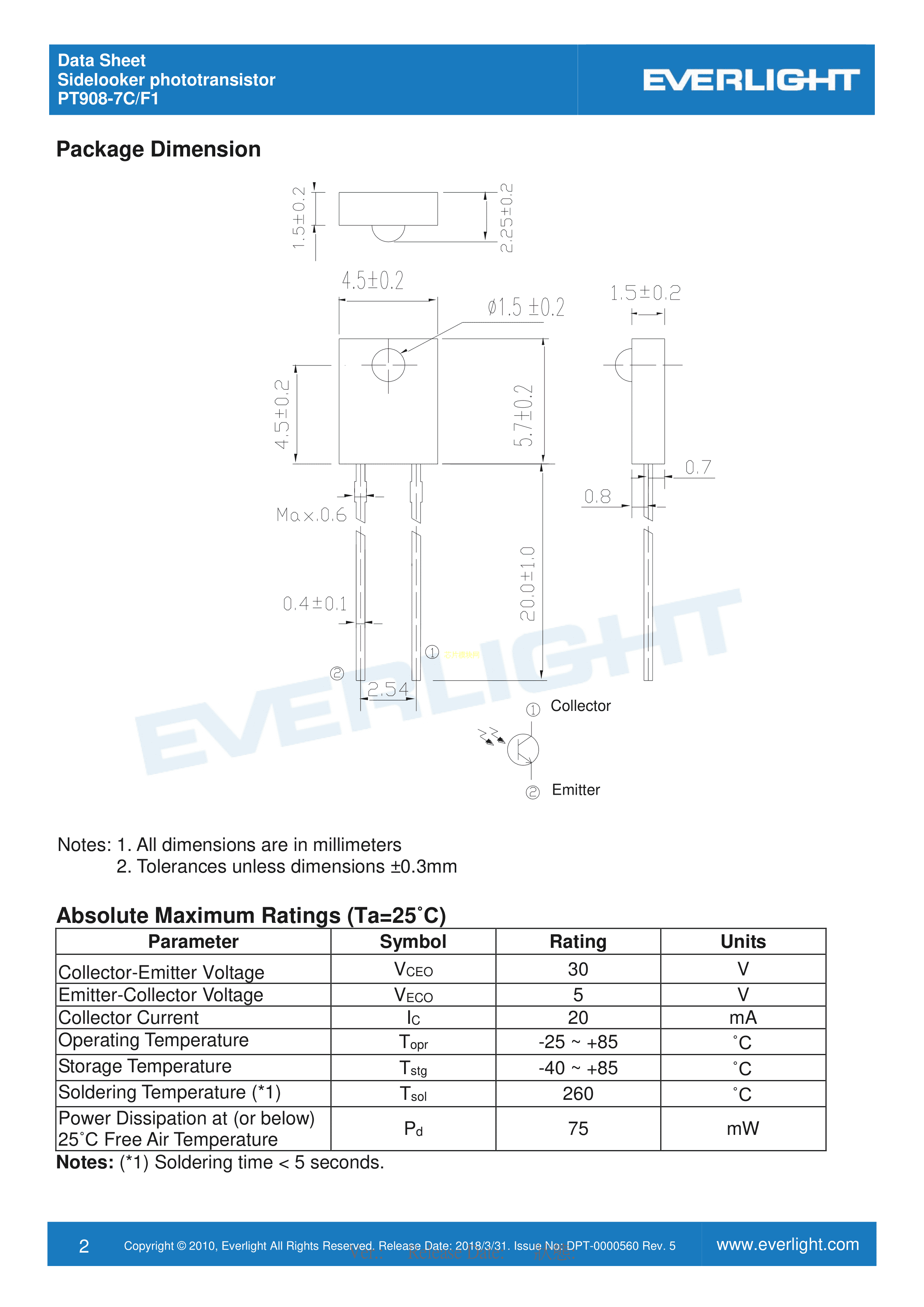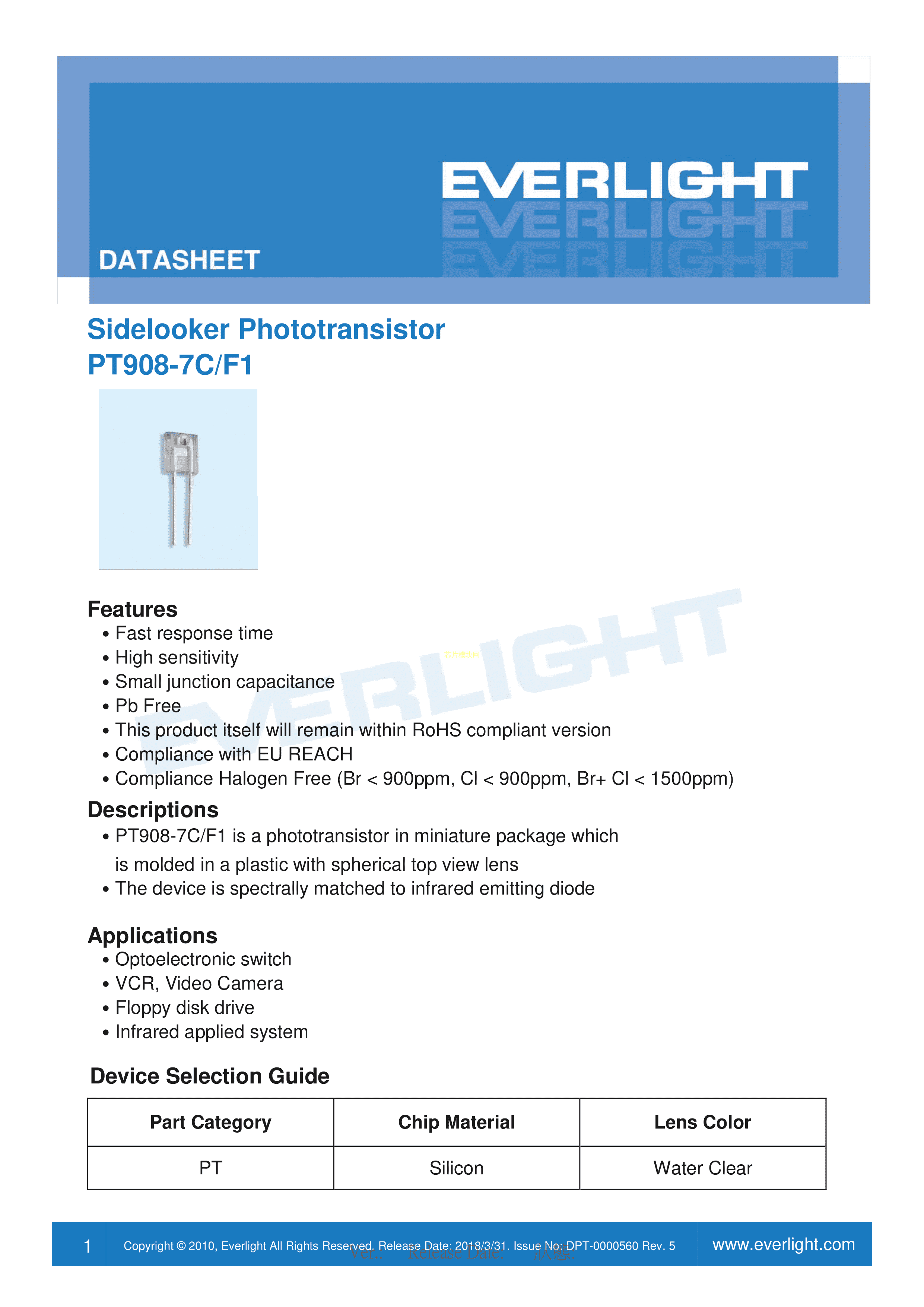 PT908-7C-F1(BIN4)数据手册ThroughHole封装EVERLIGHT(台湾亿光)PDF规格书,中英文下载