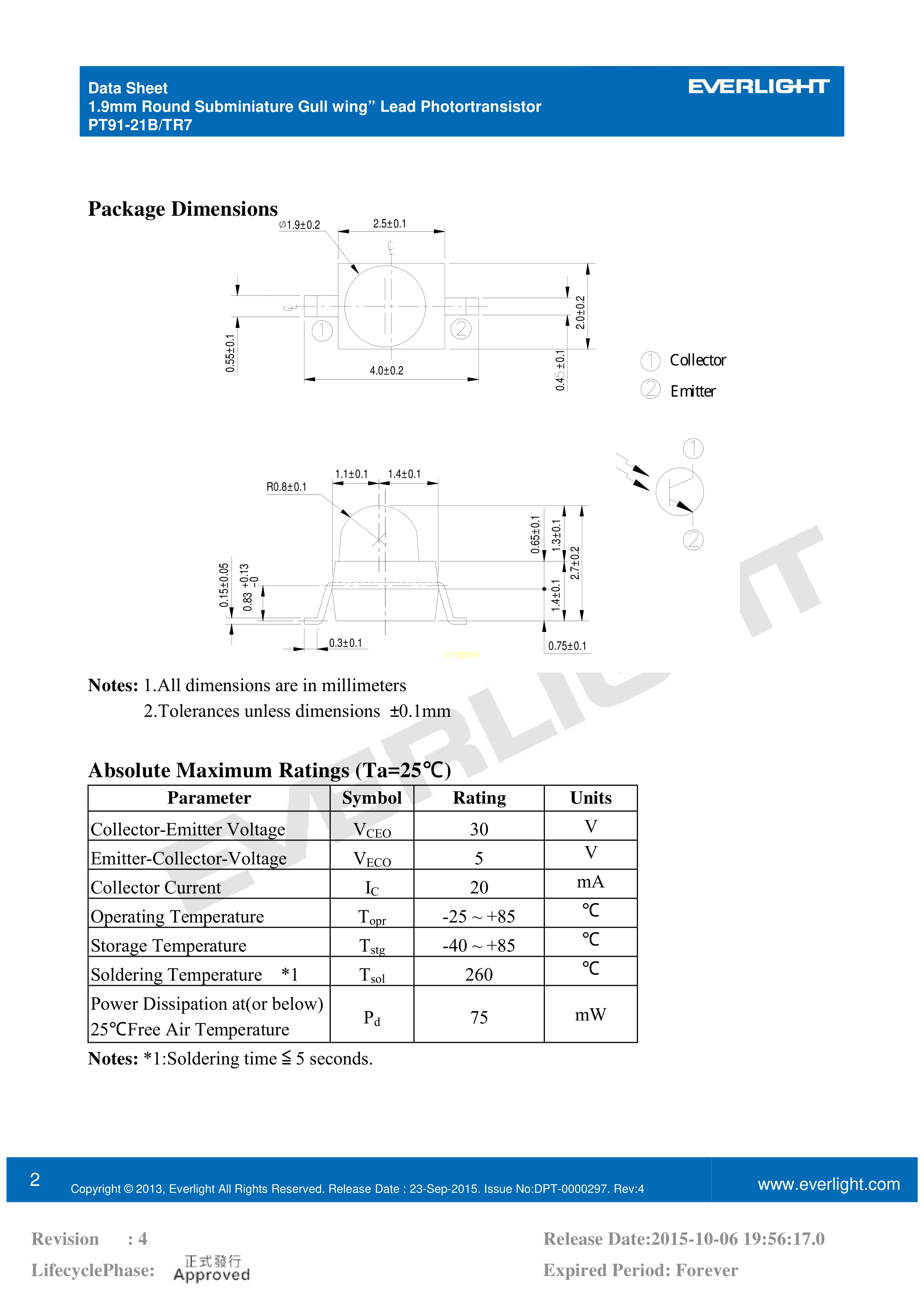 PT91-21B-TR7数据手册SMD封装EVERLIGHT(台湾亿光)PDF规格书,中英文下载
