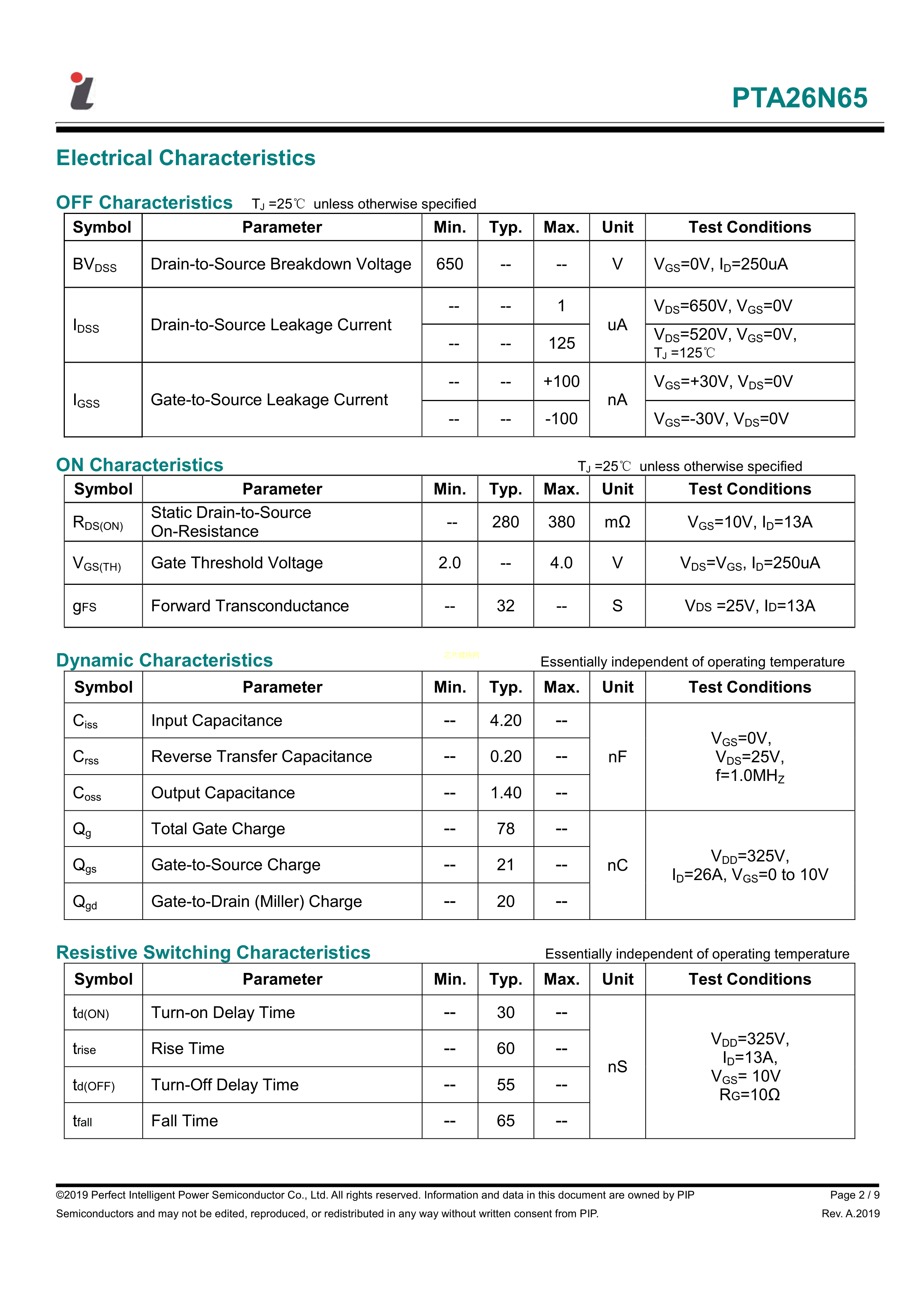 PTA26N65数据手册TO-220F封装PIP(丽隽)PDF规格书,中英文下载