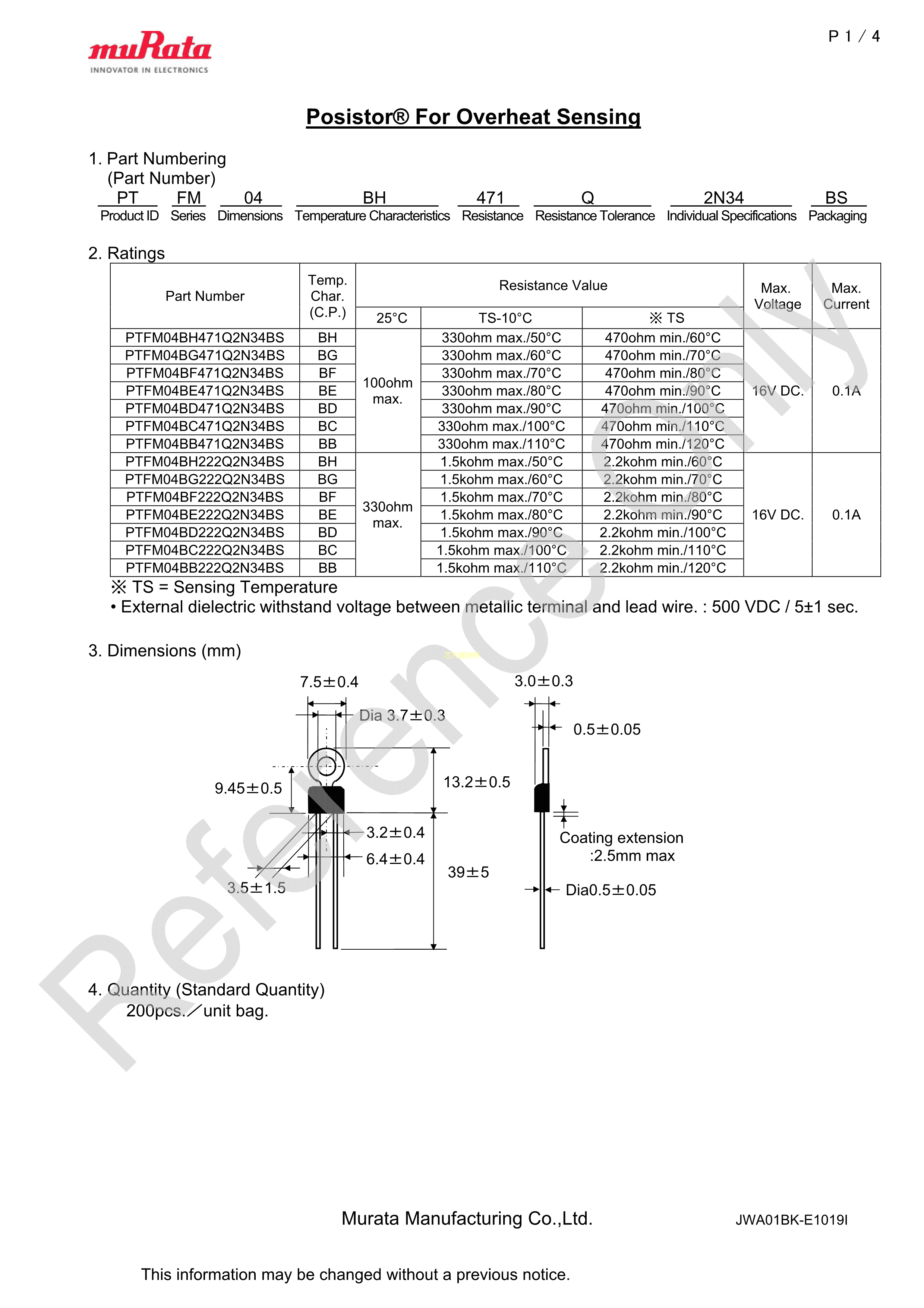 PTFM04BF471Q2N34BS数据手册径向引线P3.5mm封装muRata(村田)PDF规格书,中英文下载