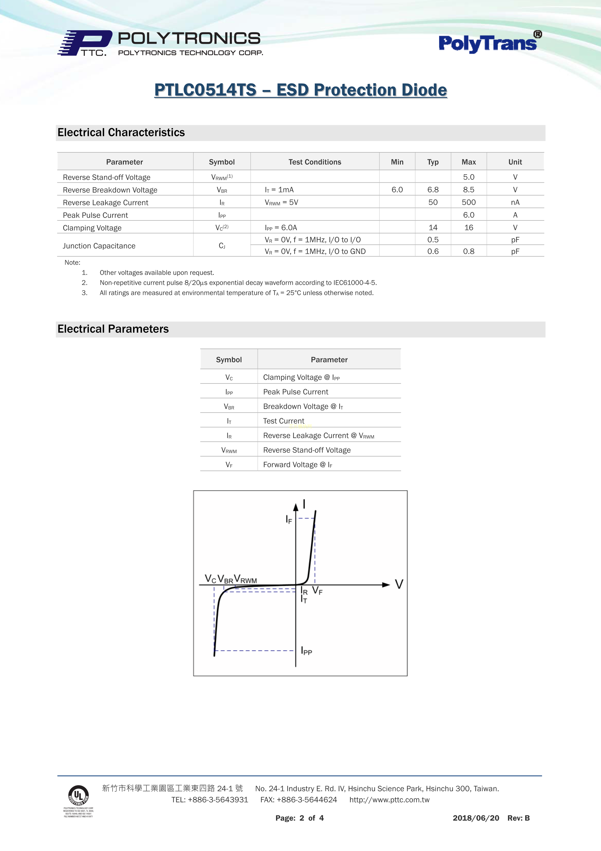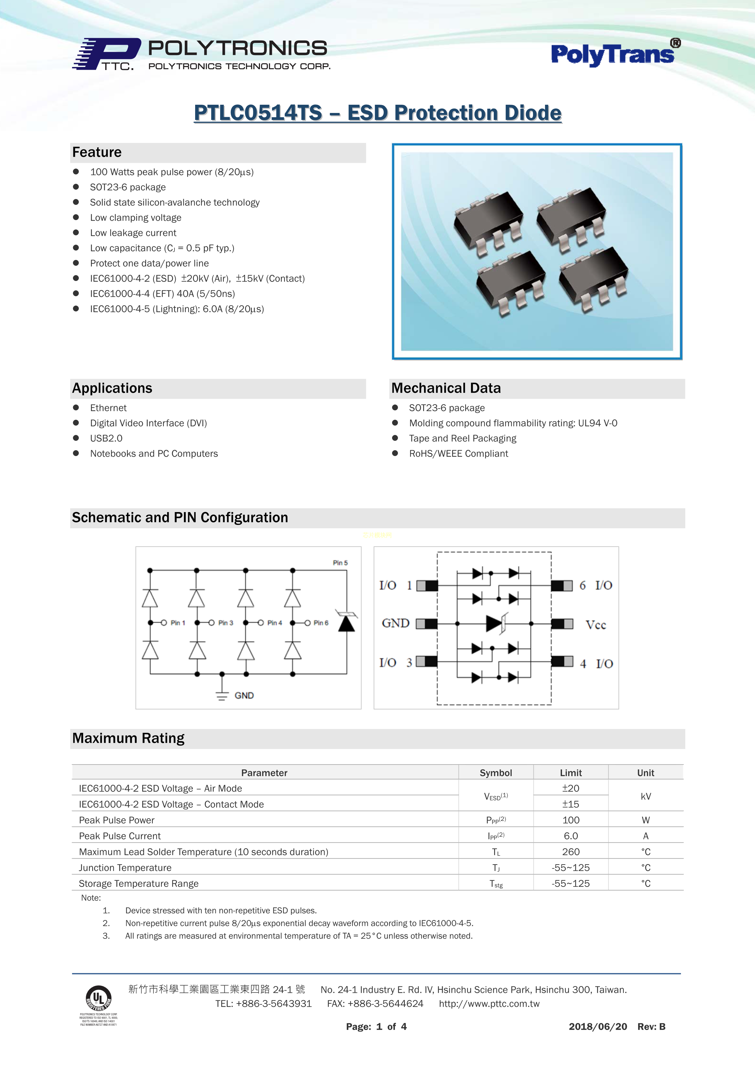 PTLC0514TS数据手册SOT-23-6封装PTTC(聚鼎)PDF规格书,中英文下载