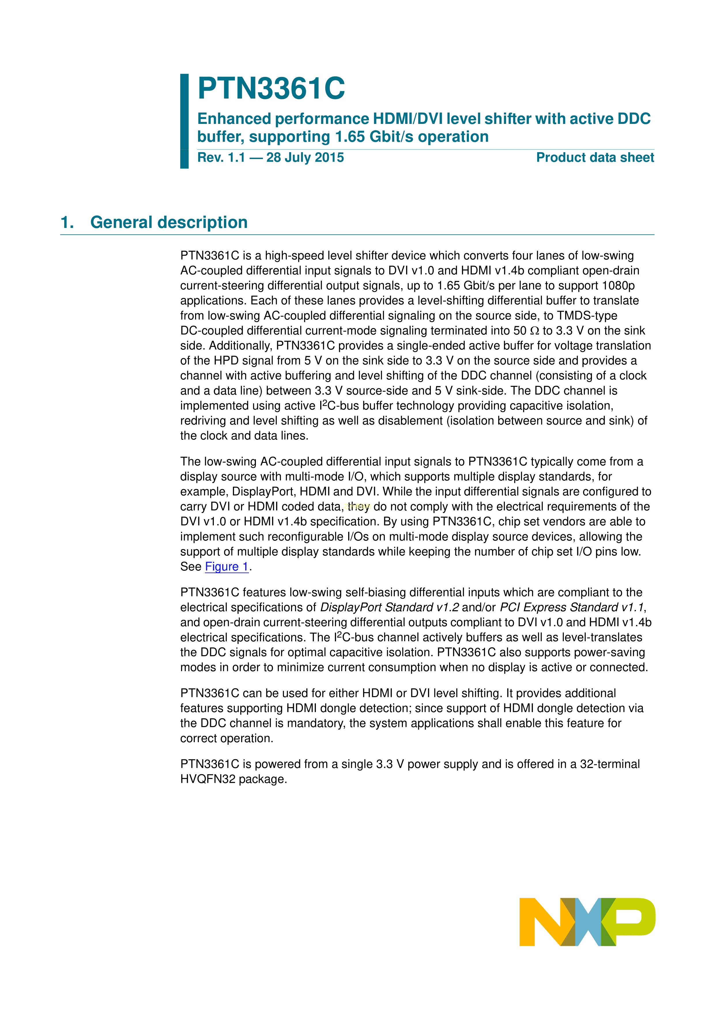 PTN3361CBSMP数据手册HVQFN-32(5x5)封装NXP(恩智浦)PDF规格书,中英文下