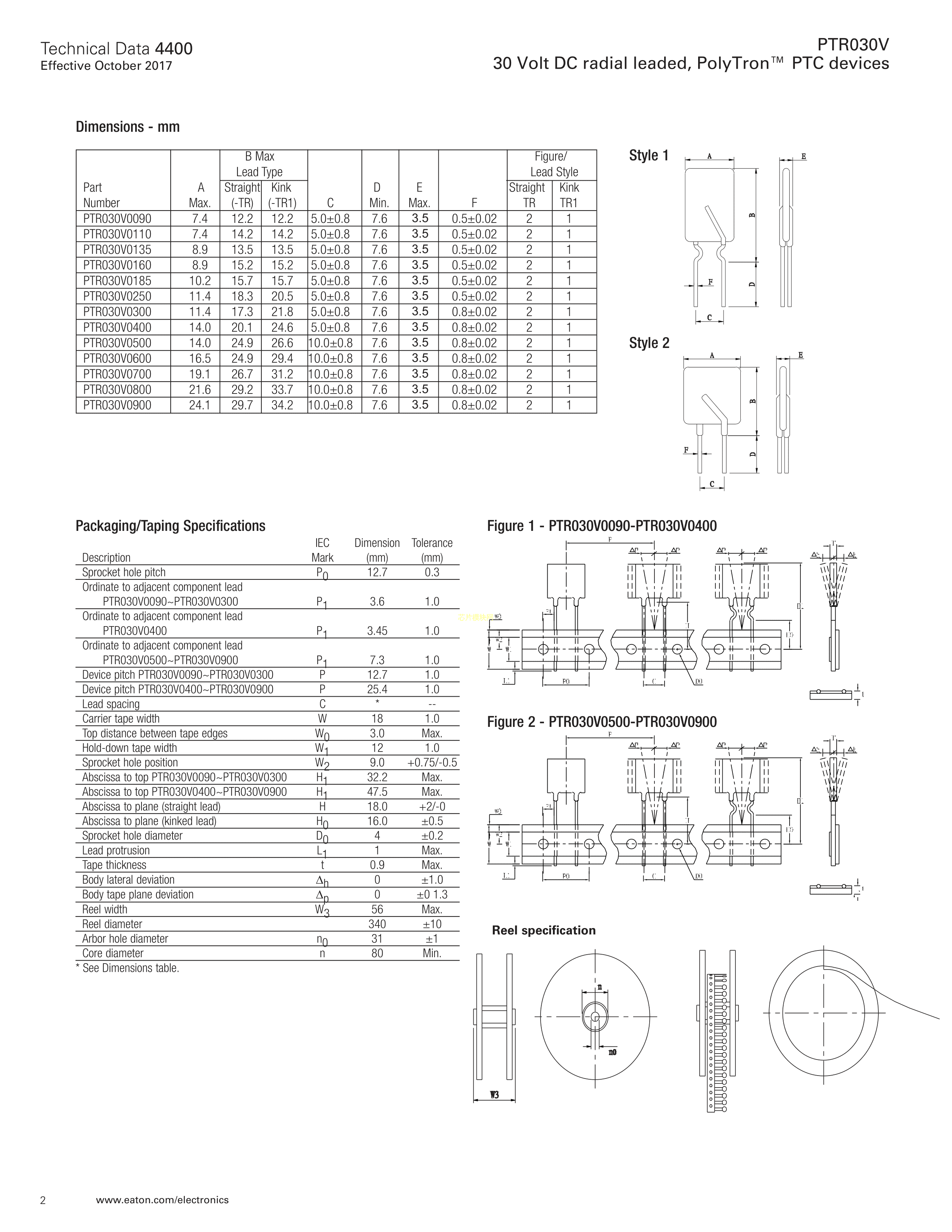 PTR030V0800-BK1数据手册径向引线封装EATON(伊顿)PDF规格书,中英文下载