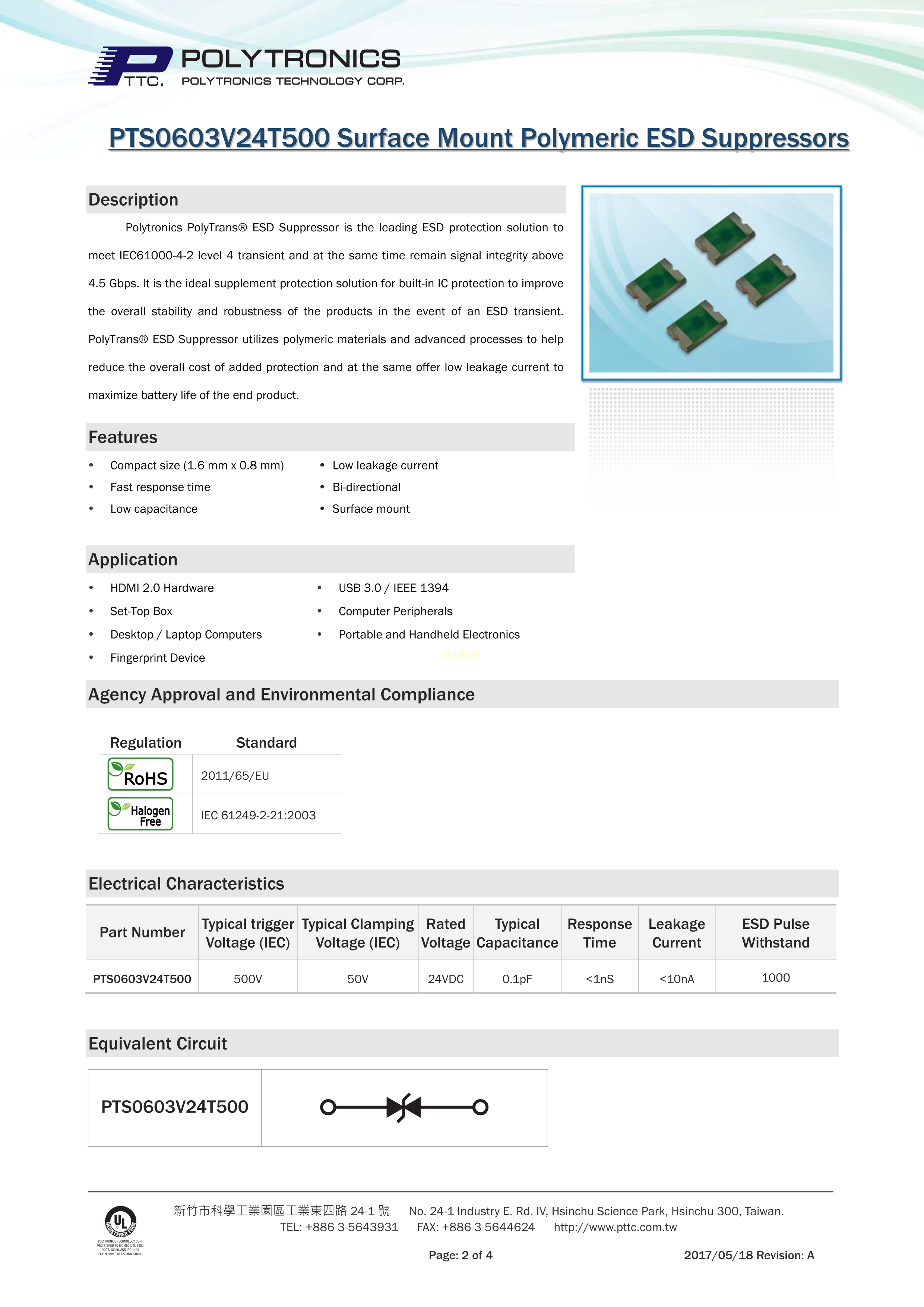 PTS0603V24T500数据手册0603封装PTTC(聚鼎)PDF规格书,中英文下载