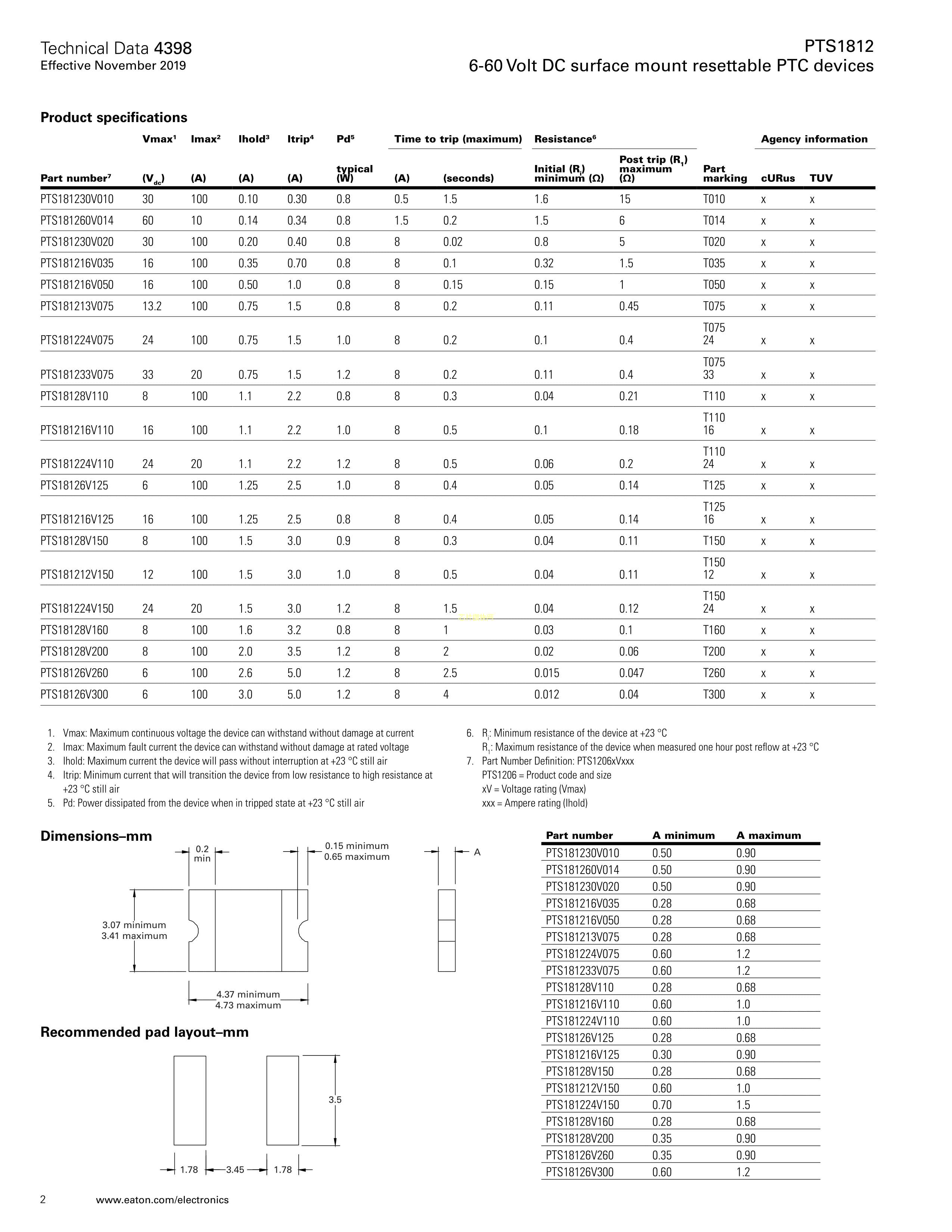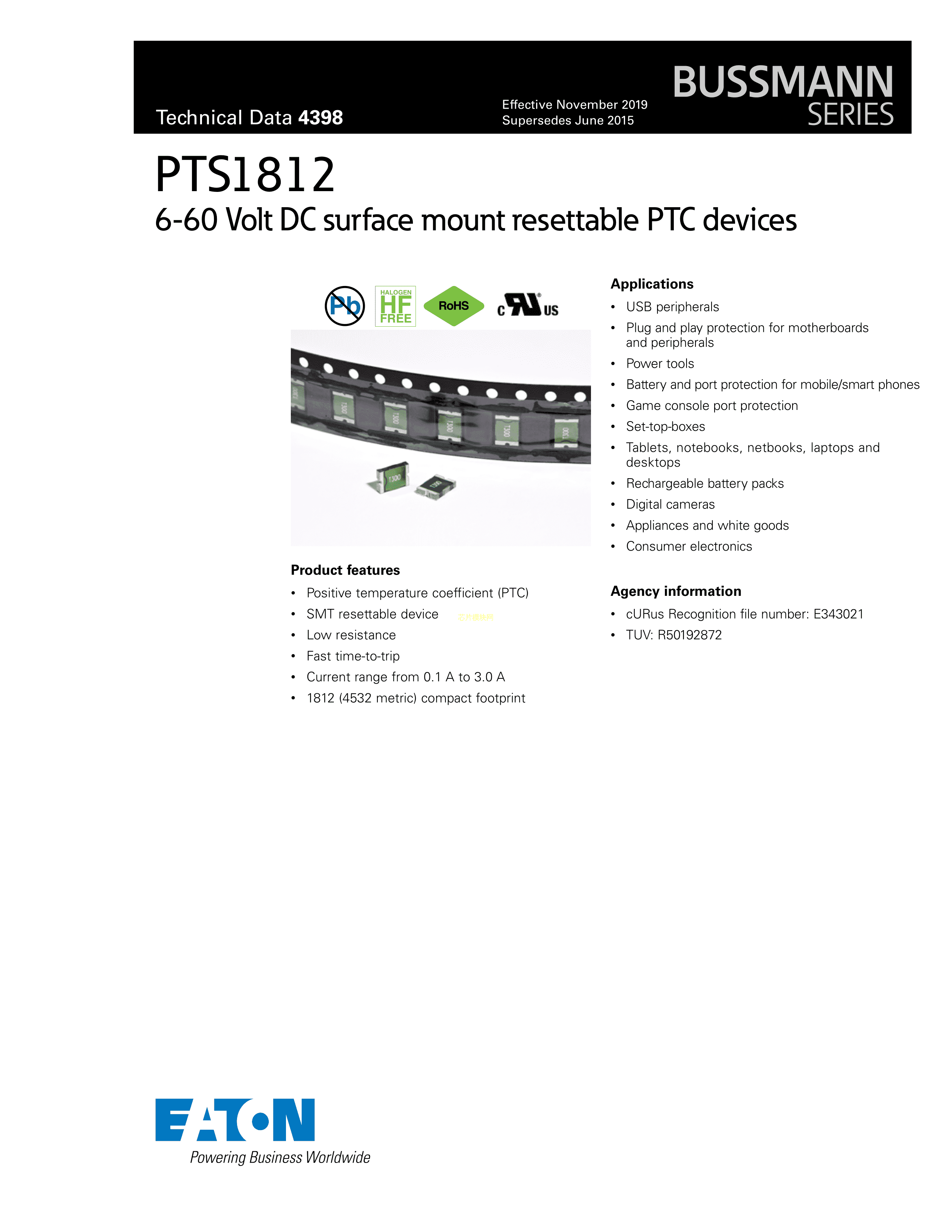 PTS18126V260数据手册1812封装EATON(伊顿)PDF规格书,中英文下载