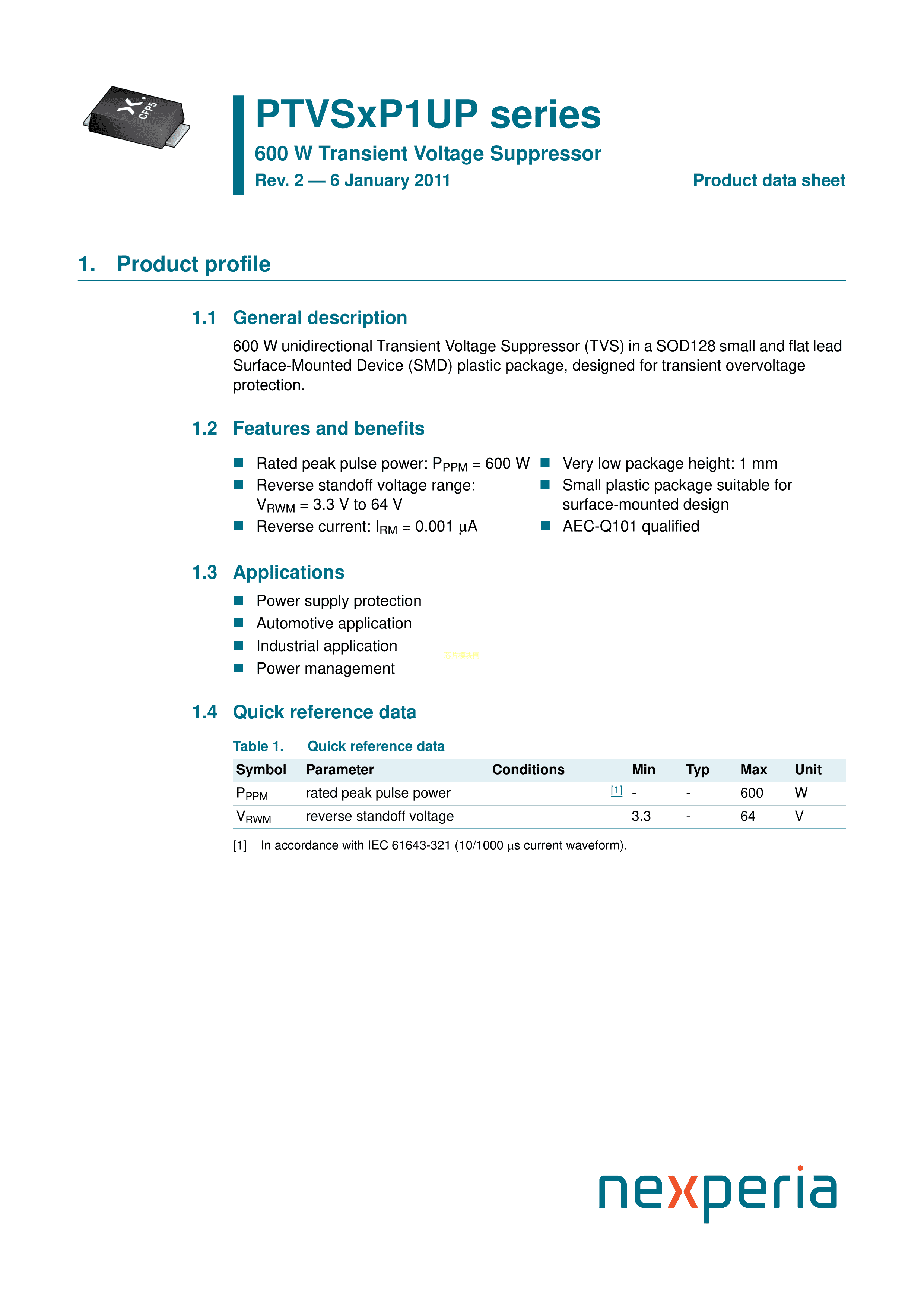 PTVS28VP1UP115数据手册SOD-128封装Nexperia(安世)PDF规格书,中英文下
