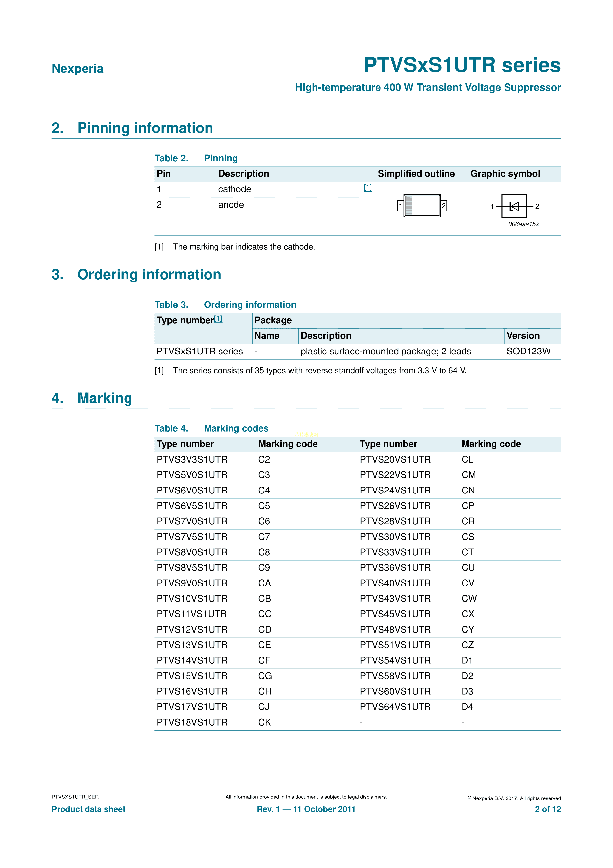 PTVS33VS1UTR115数据手册SOD-123W封装Nexperia(安世)PDF规格书,中英