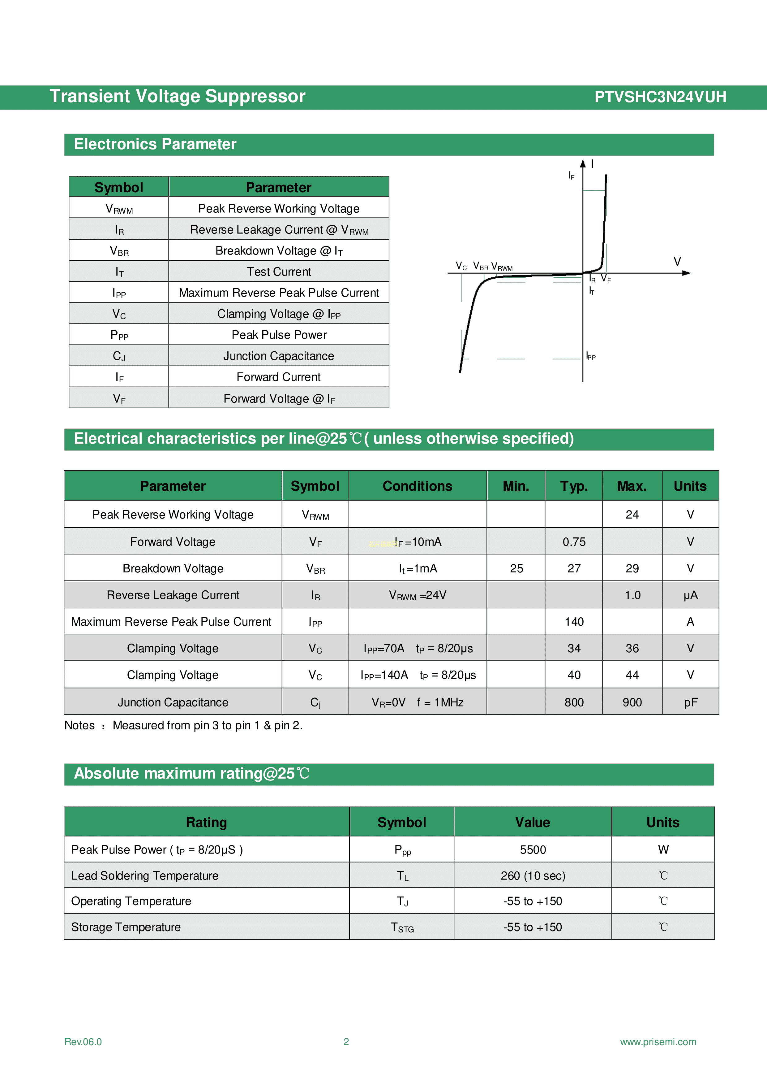 PTVSHC3N24VUH数据手册DFN2x2-3L封装Prisemi(芯导)PDF规格书,中英文下载