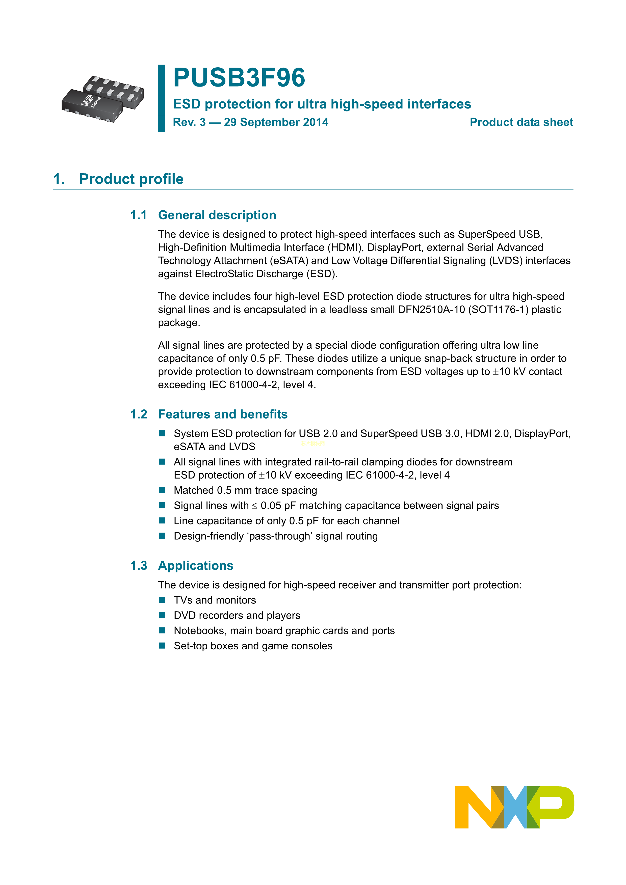 PUSB3F96X数据手册DFN2510A-10封装Nexperia(安世)PDF规格书,中英文下载