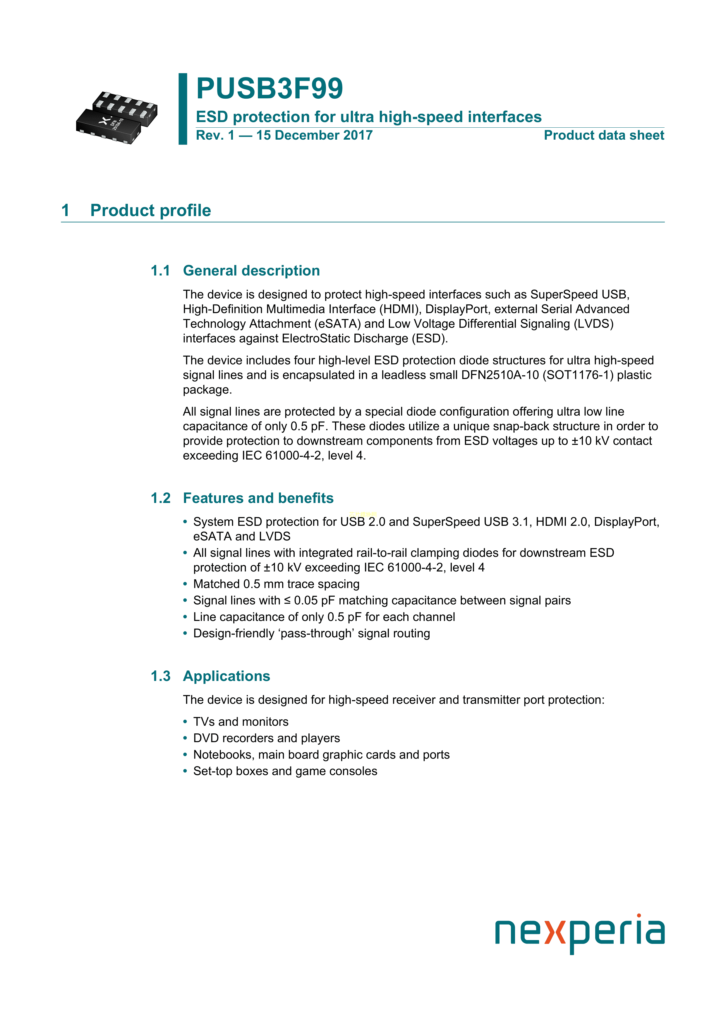 PUSB3F99X数据手册DFN2510A-10封装Nexperia(安世)PDF规格书,中英文下载