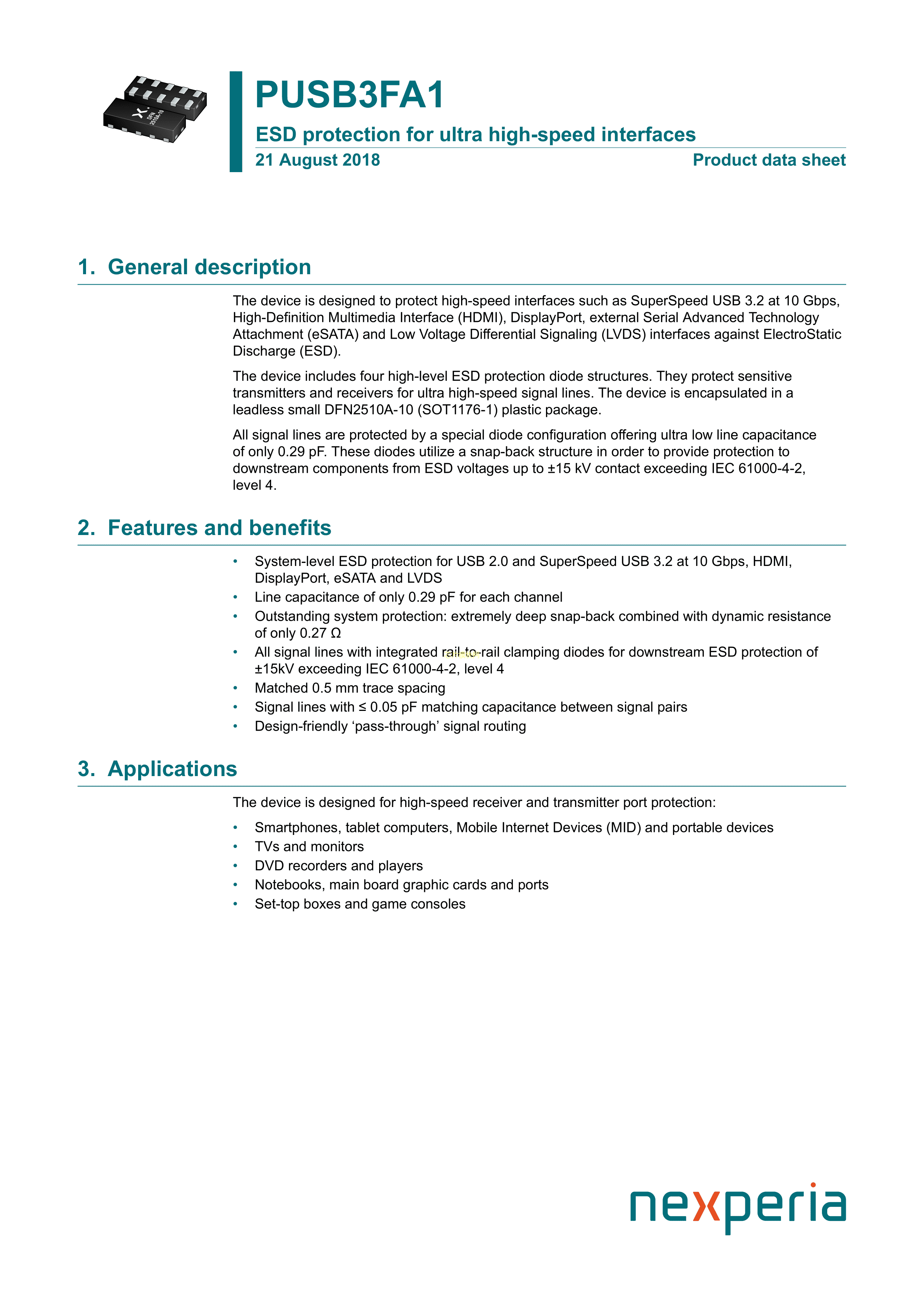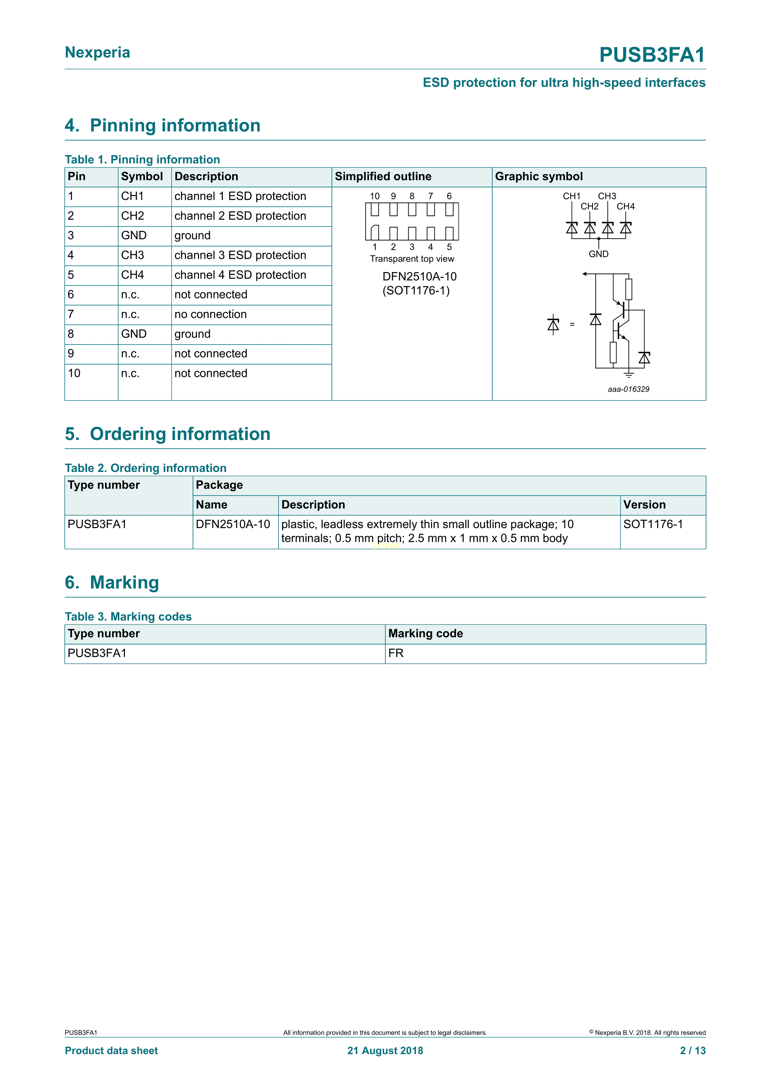 PUSB3FA1Z数据手册DFN2510A-10封装Nexperia(安世)PDF规格书,中英文下载