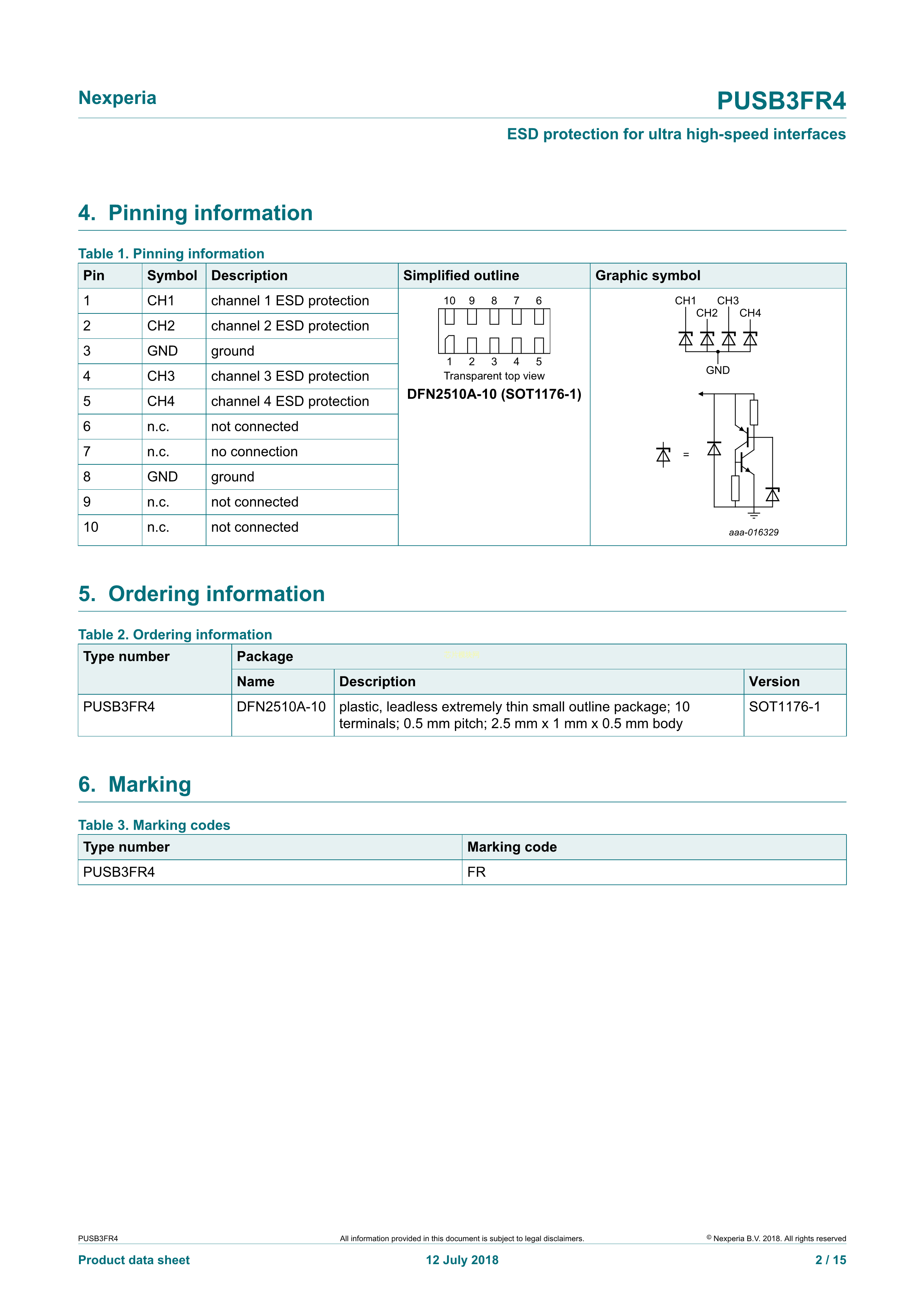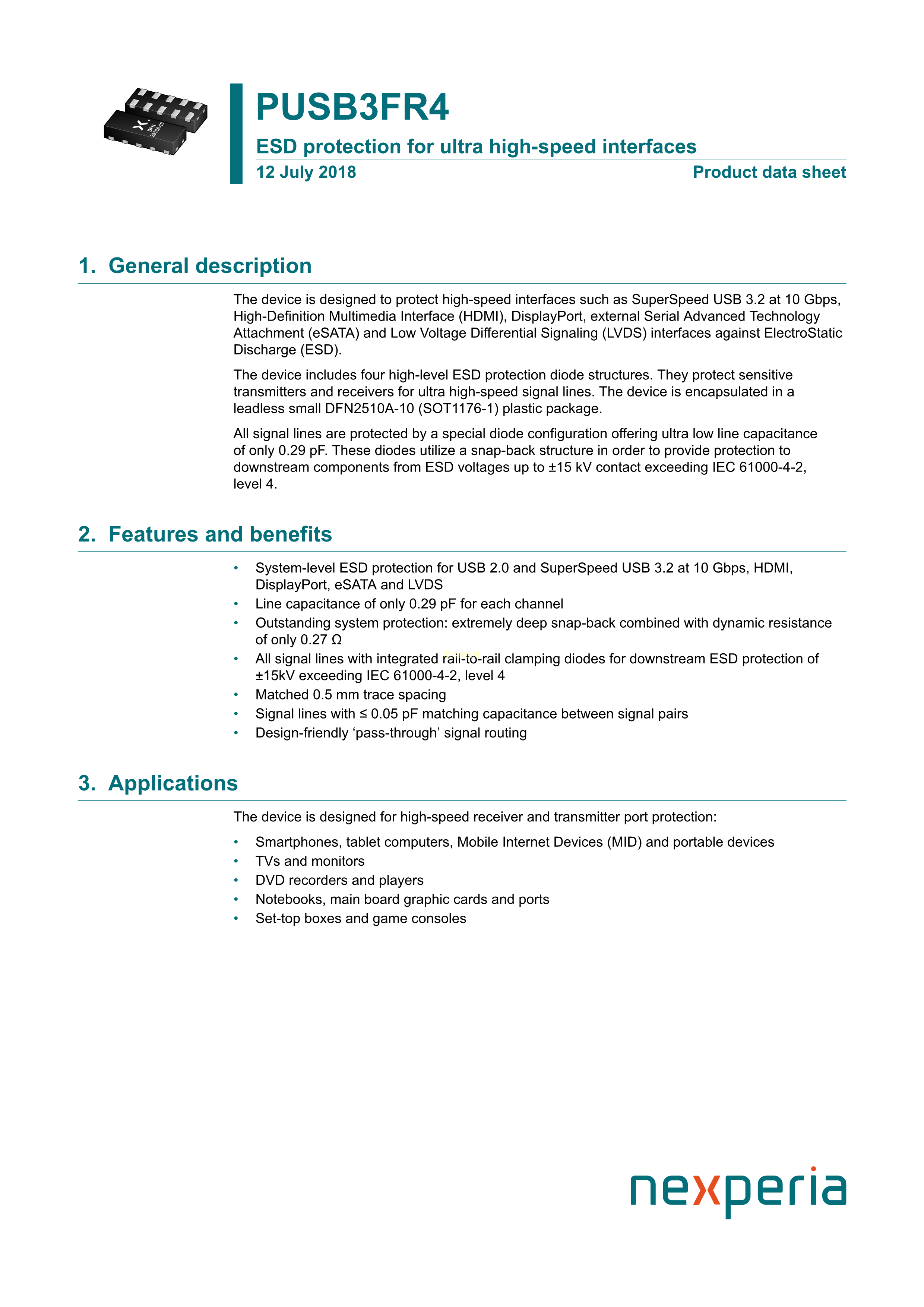 PUSB3FR4Z数据手册DFN2510A-10封装Nexperia(安世)PDF规格书,中英文下载