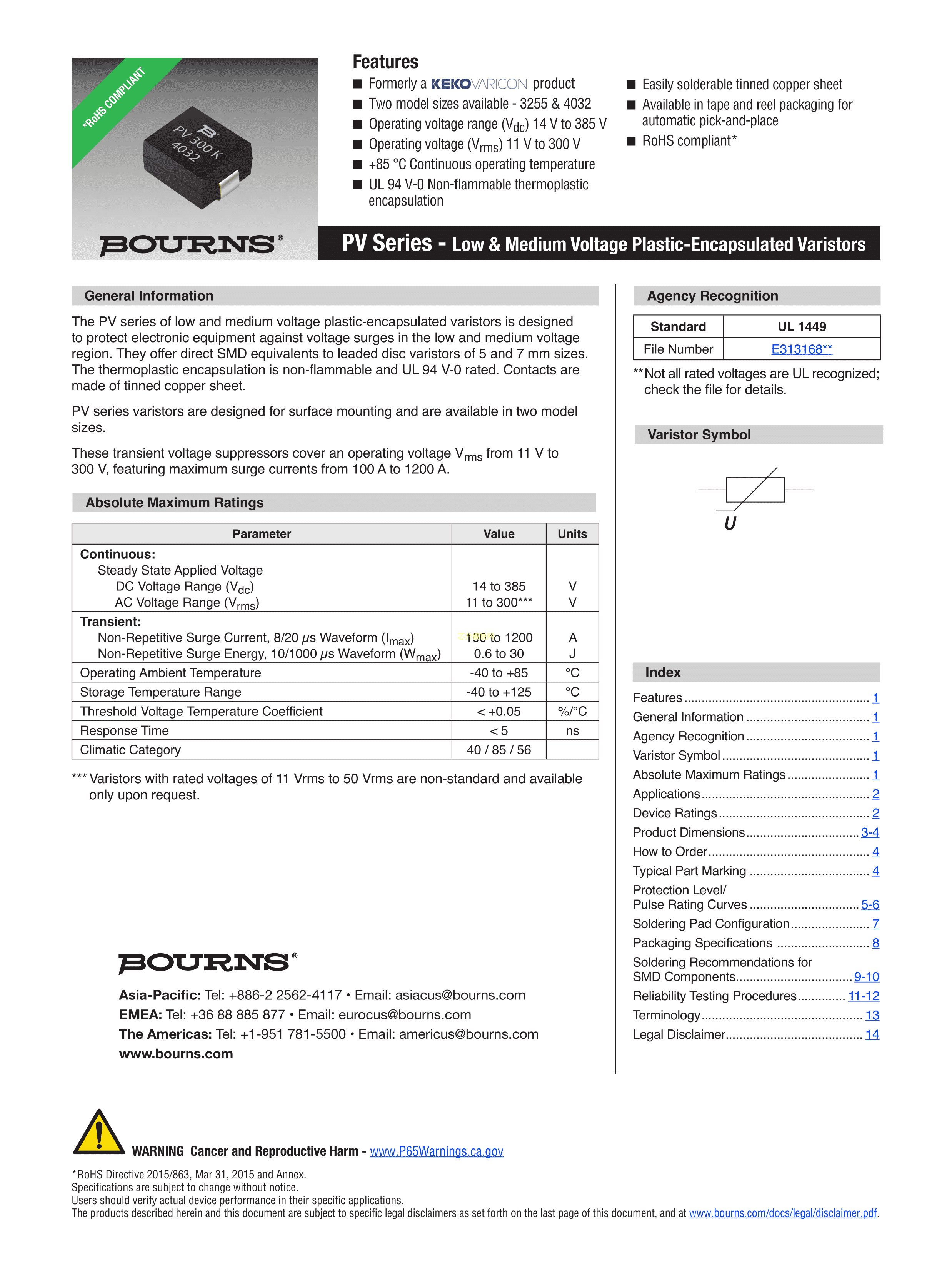 PV115K4032R2数据手册SMD封装BOURNSPDF规格书,中英文下载