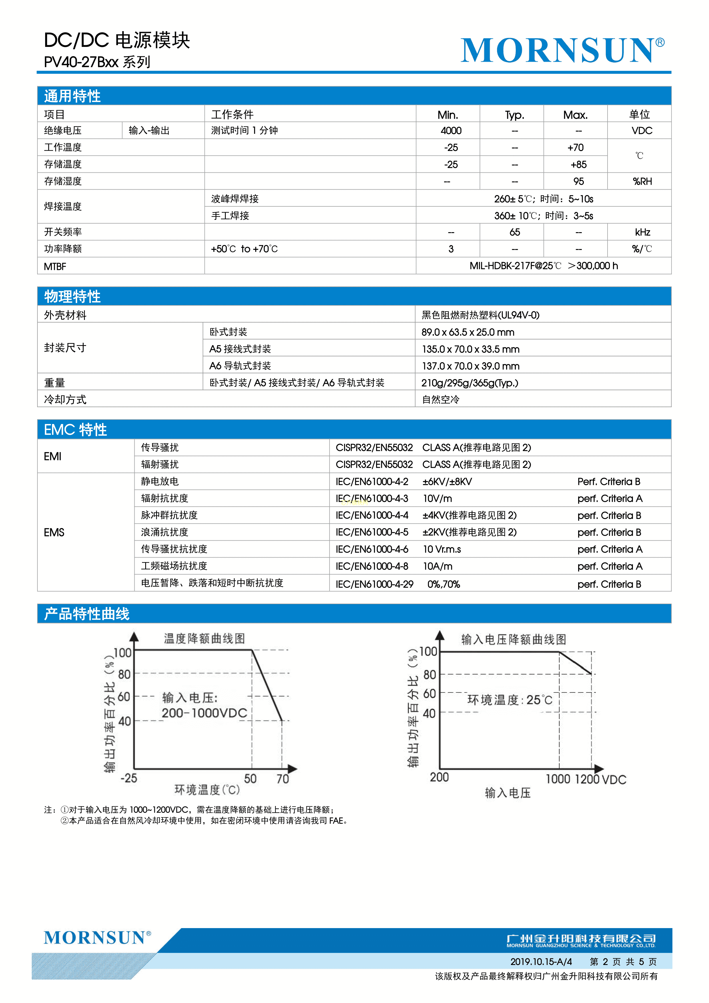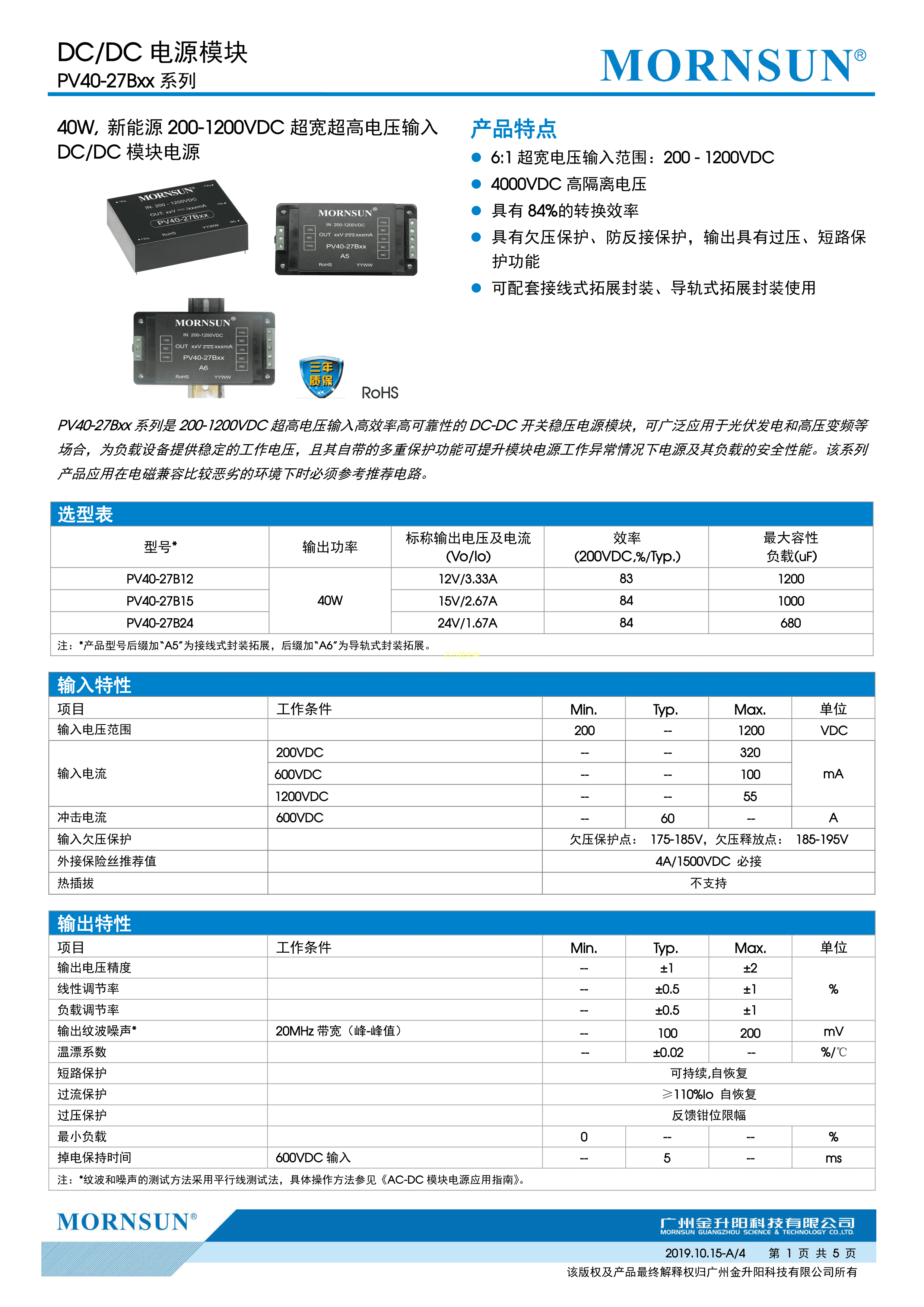 PV40-27B24数据手册-封装MORNSUN(金升阳)PDF规格书,中英文下载