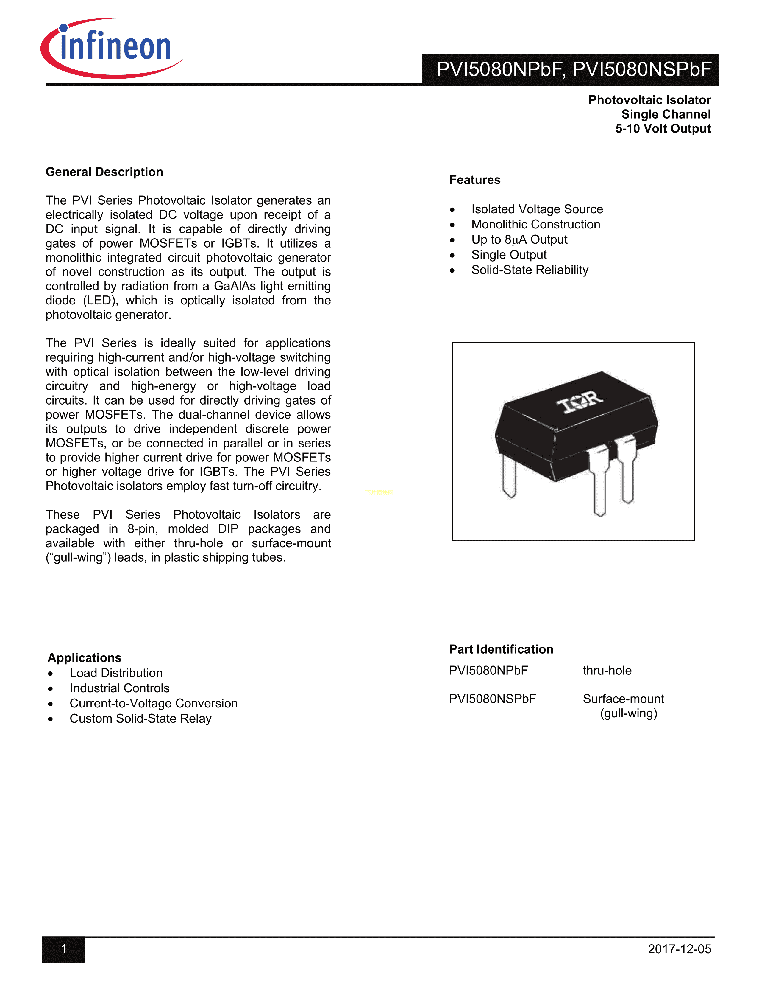 PVI5080NPBF数据手册SMT8封装Infineon(英飞凌)PDF规格书,中英文下载
