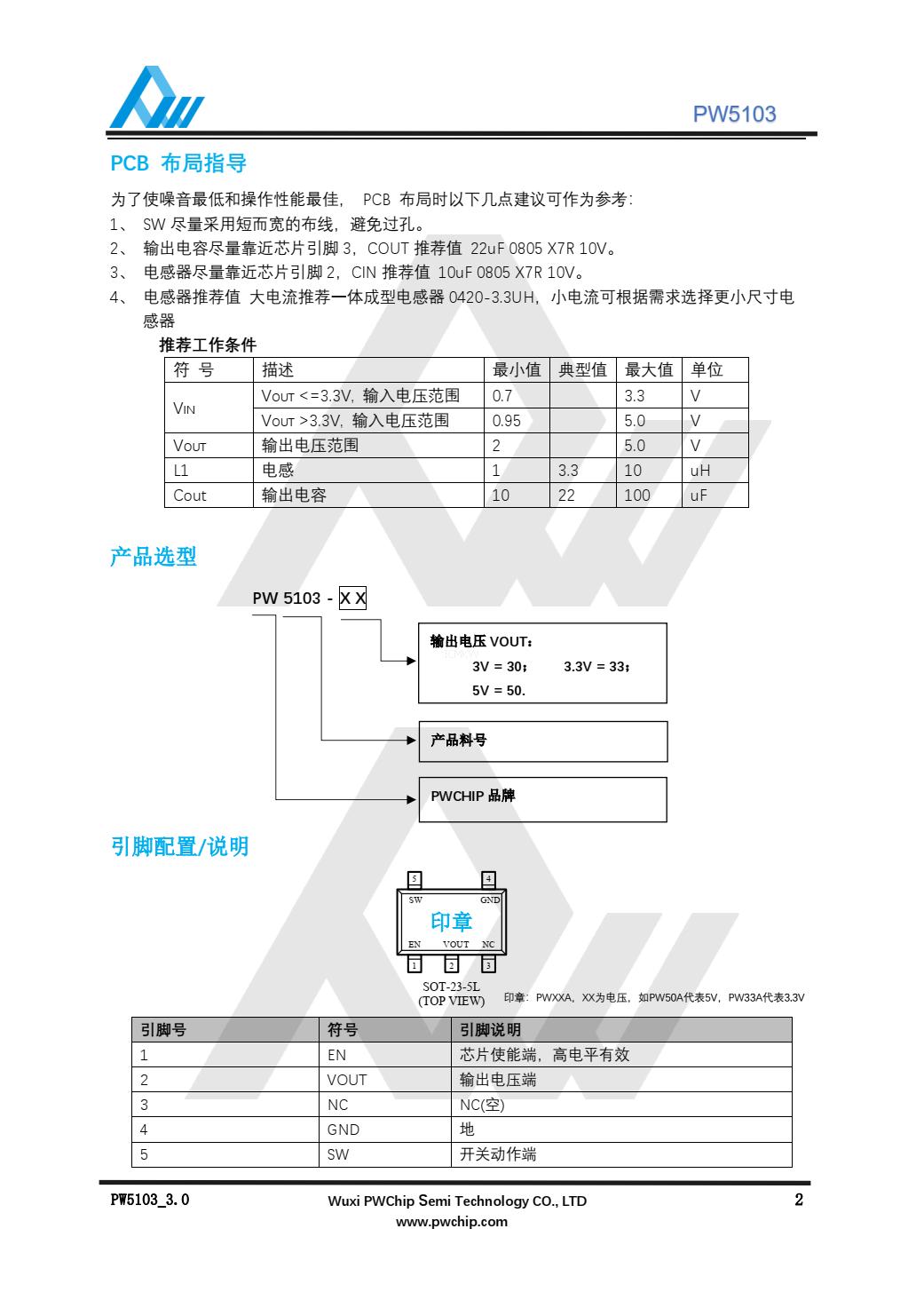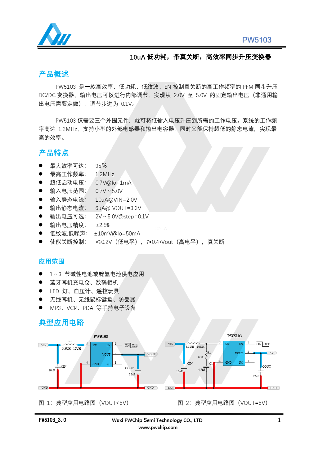 :PW5103升压IC的规格书和说明书