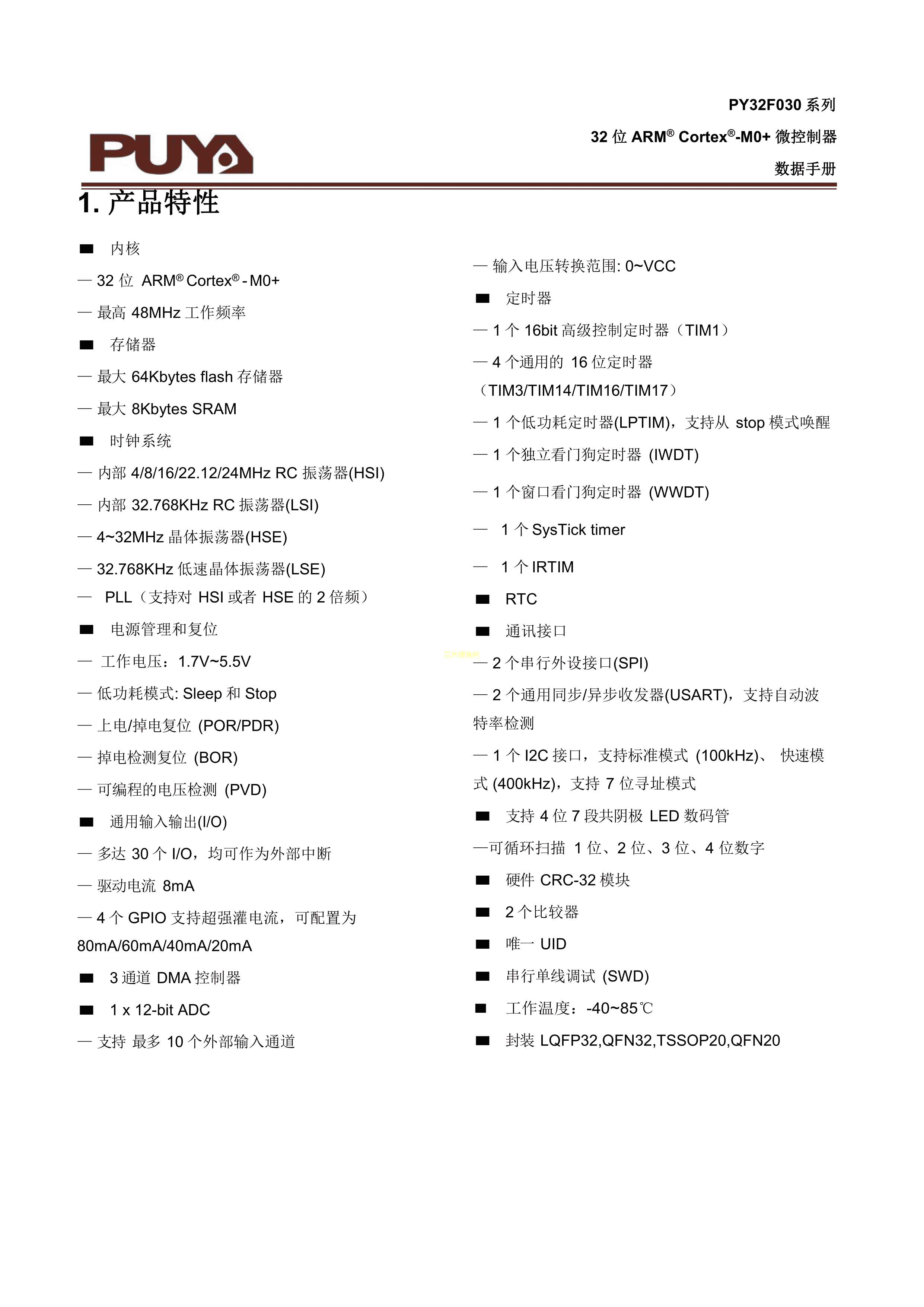 PY32F030K18T6数据手册LQFP32封装PUYA(普冉)PDF规格书,中英文下载