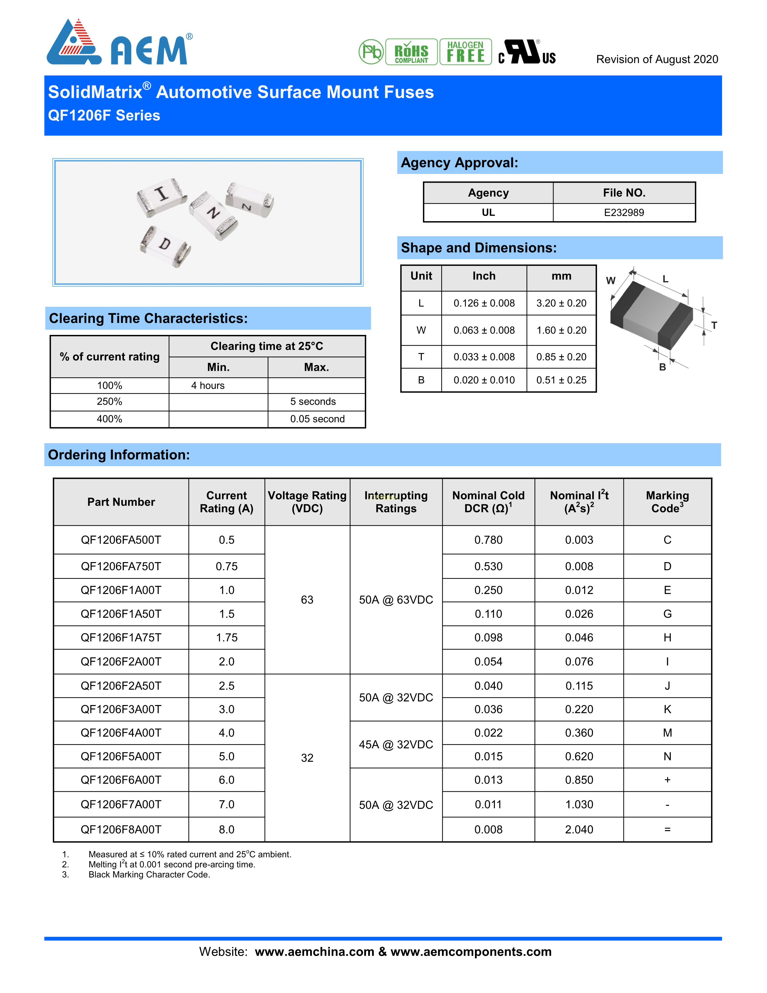 QF1206F3A00T数据手册1206封装AEMPDF规格书,中英文下载