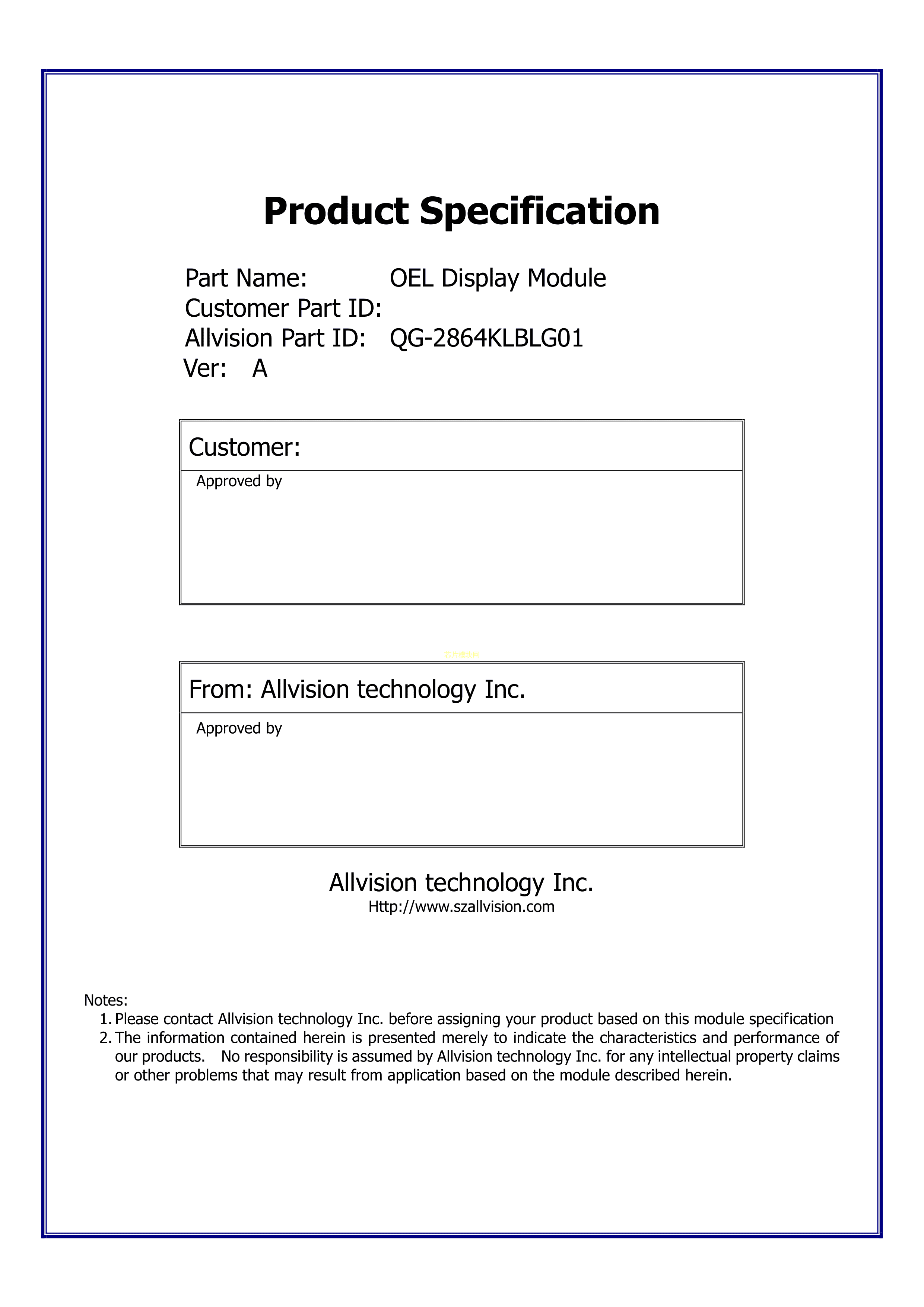 QG-2864KLBLG01数据手册1.3封装Allvision(全智景)PDF规格书,中英文下载