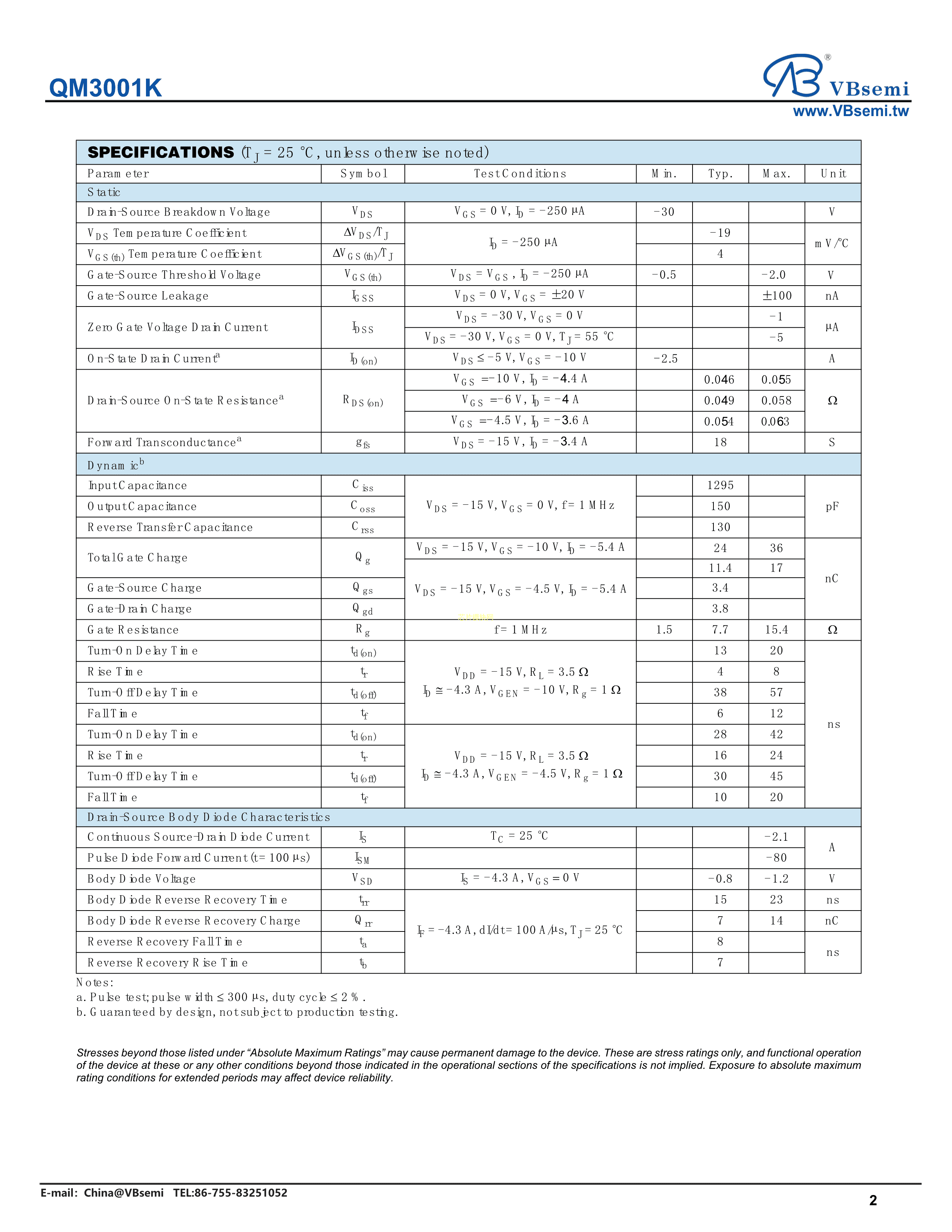 QM3001K数据手册SOT-23-3封装VBsemi(台湾微碧)PDF规格书,中英文下载