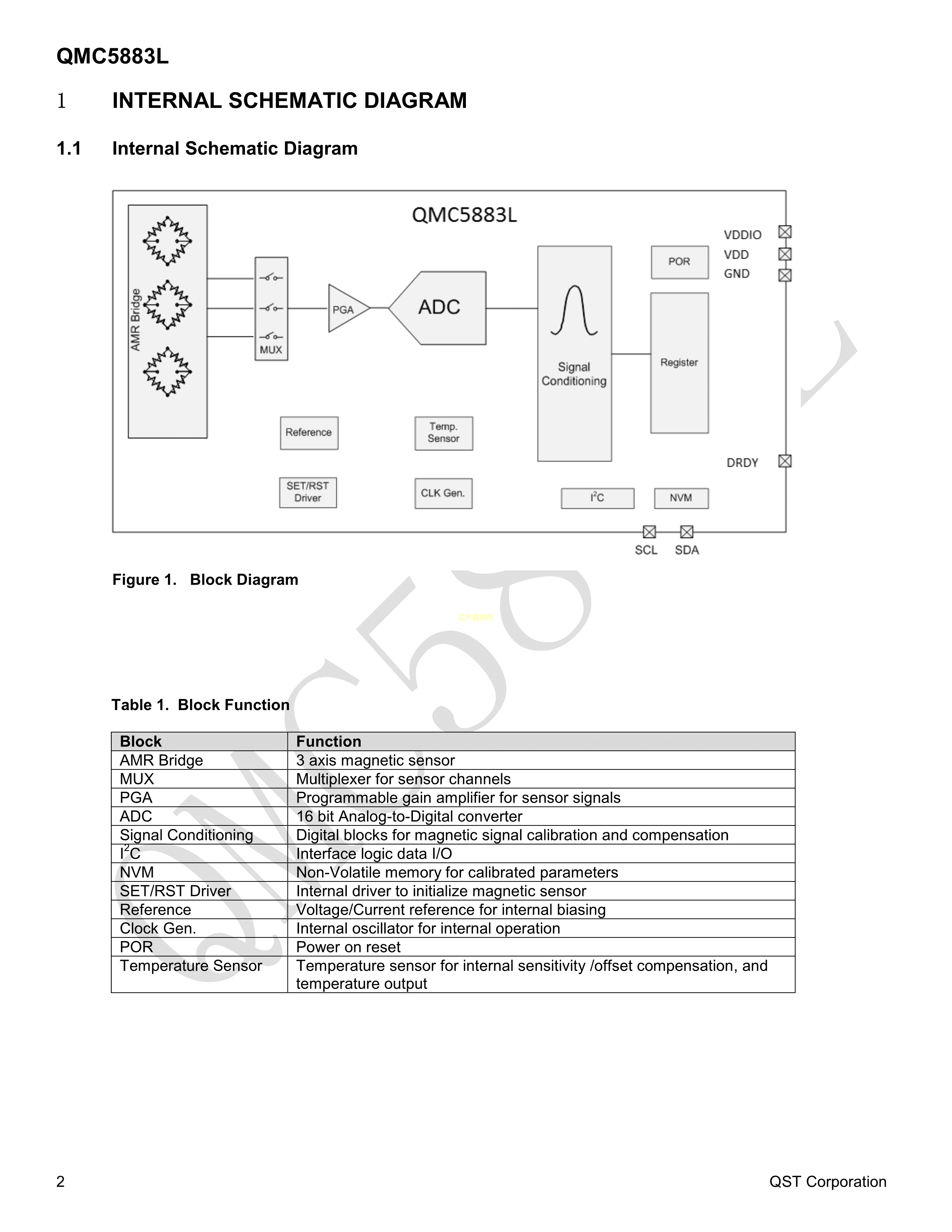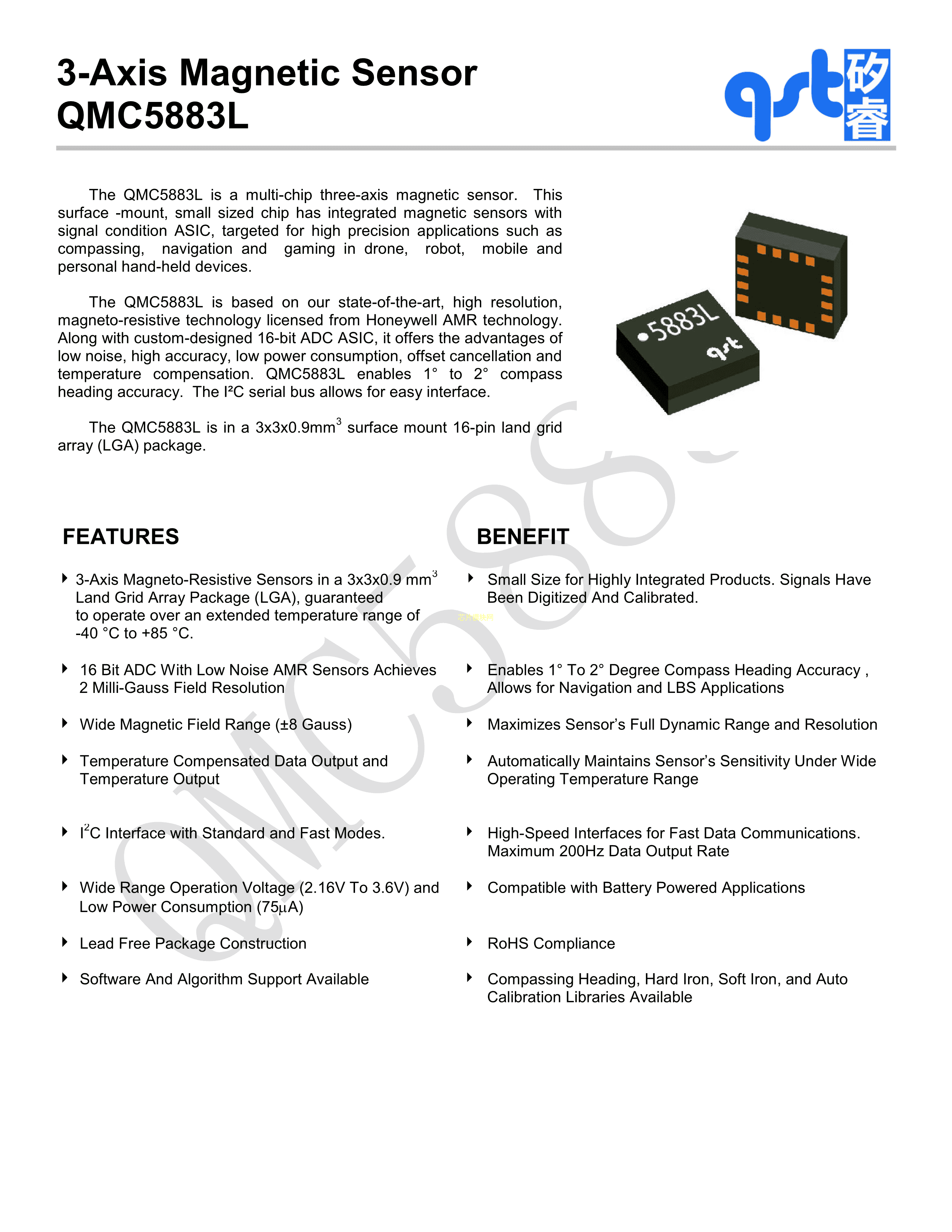 QMC5883L数据手册LGA-16(3x3x0.9mm)封装QST(上海矽睿)PDF规格书,中英文下载