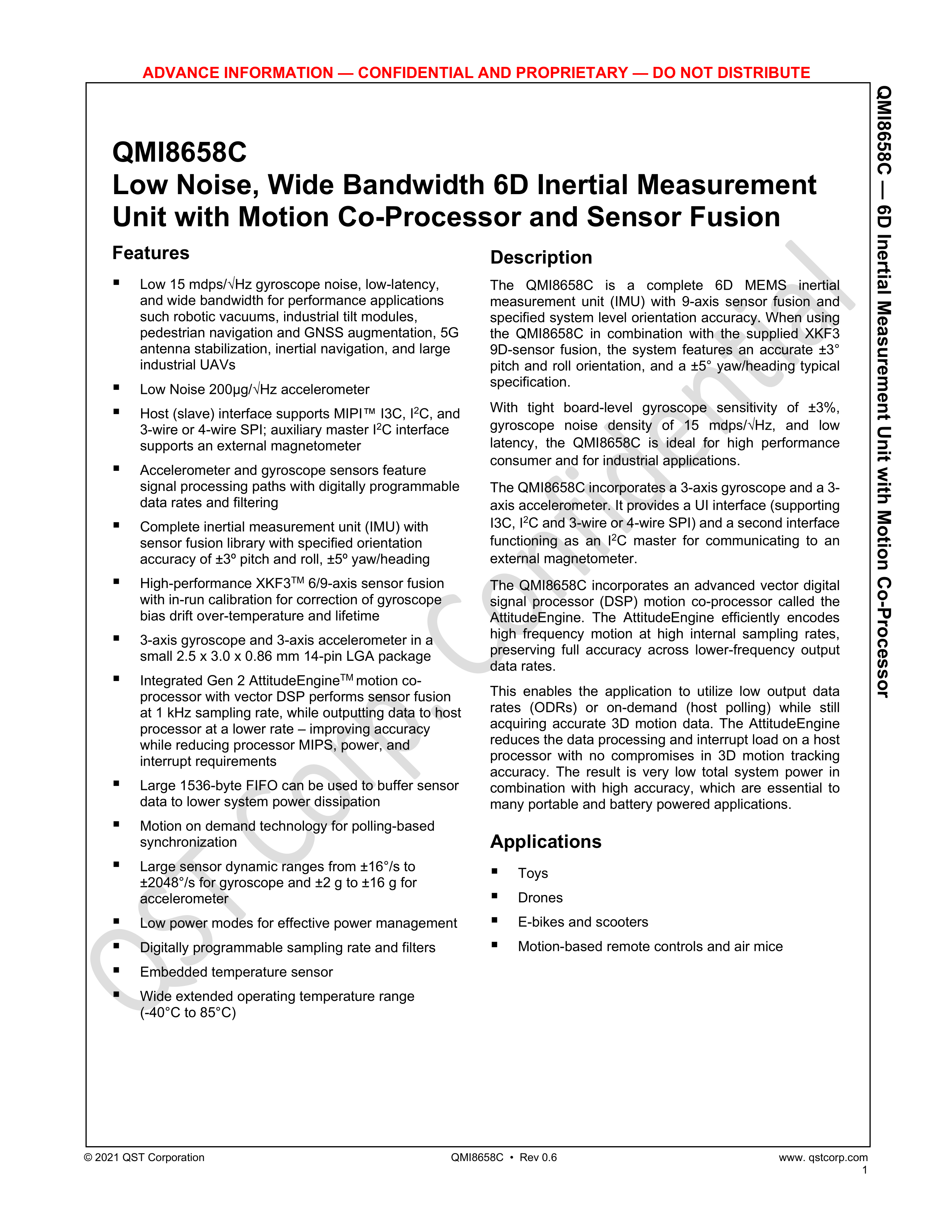 QMI8658C数据手册LGA-14封装QST(上海矽睿)PDF规格书,中英文下载