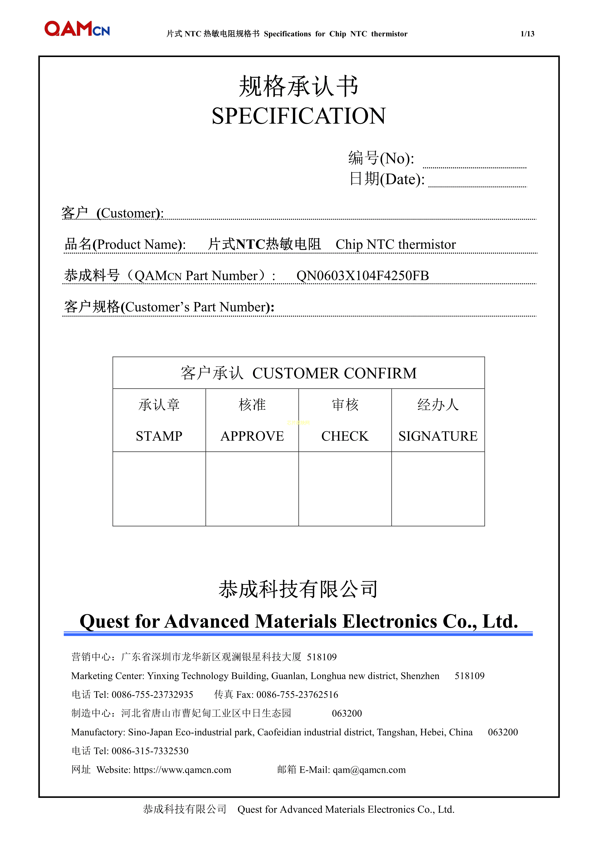 QN0603X104F4250FB数据手册0603封装QAMcn(恭成科技)PDF规格书,中英文下载
