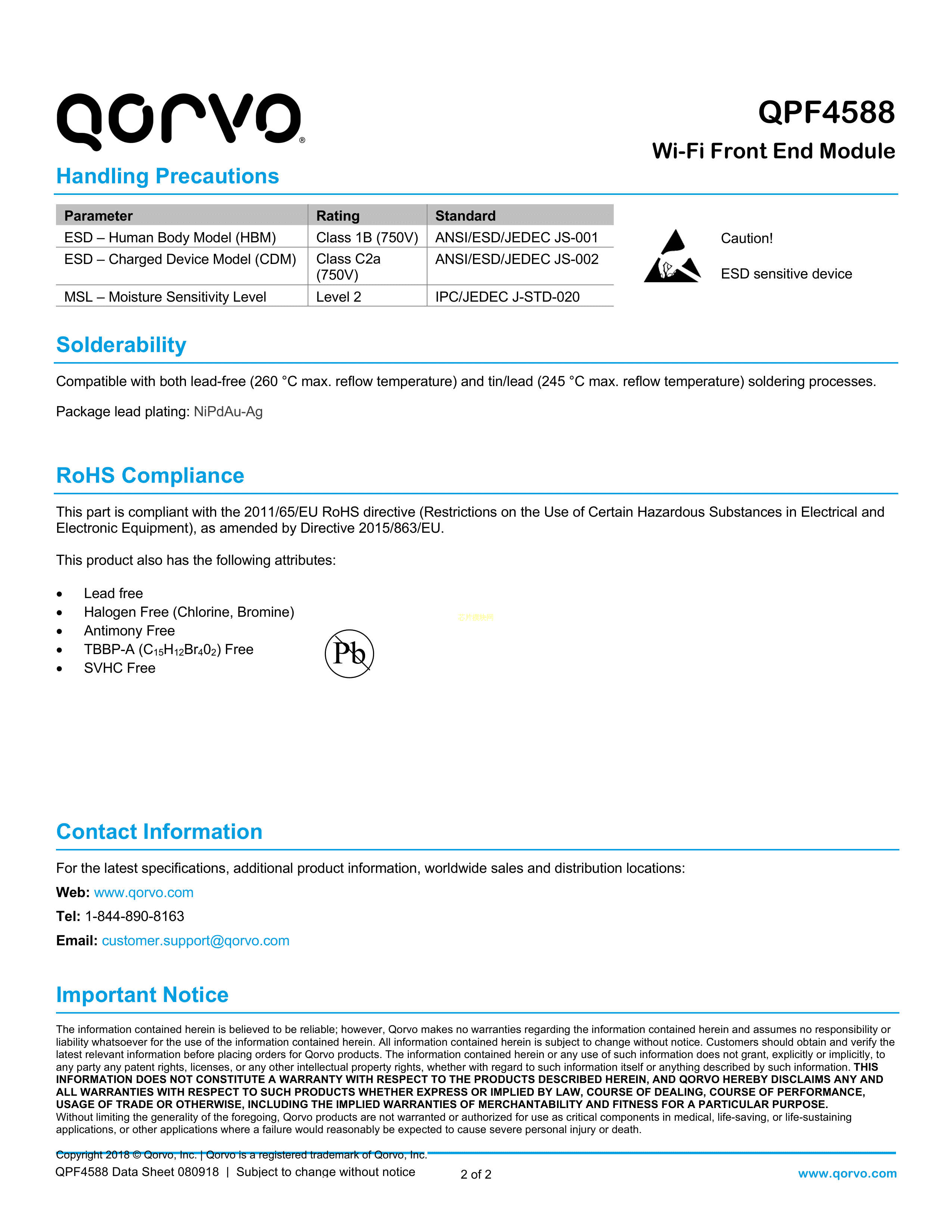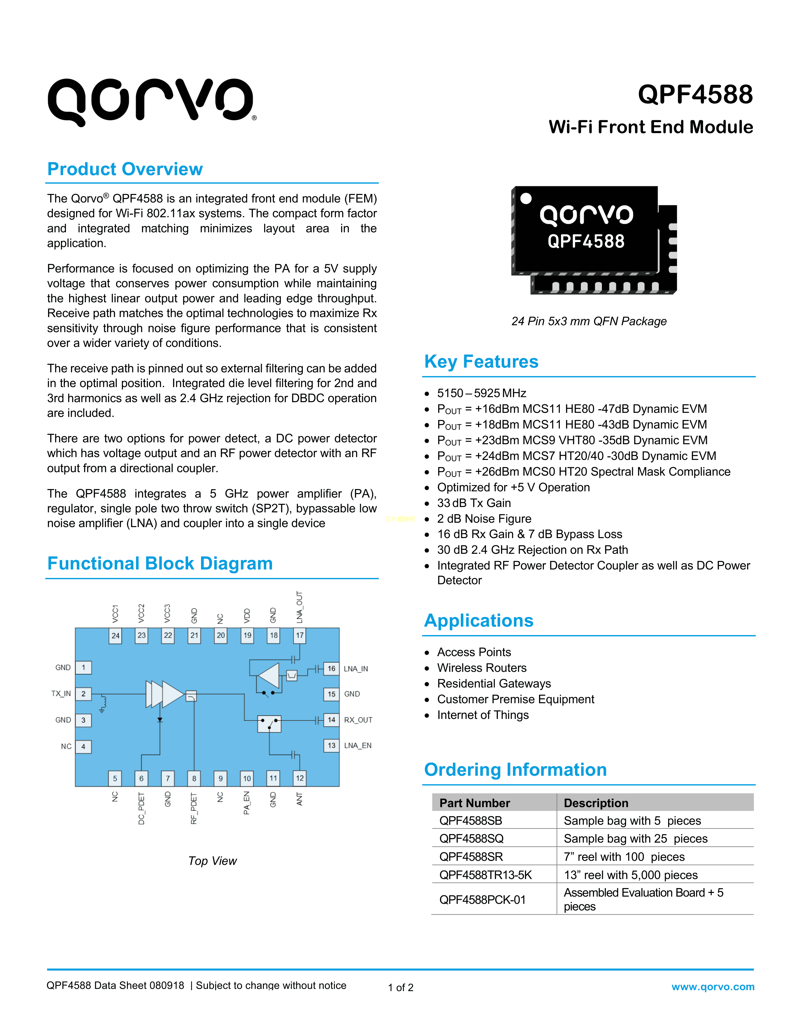 QPF4588SR数据手册QFN-24封装QorvoPDF规格书,中英文下载