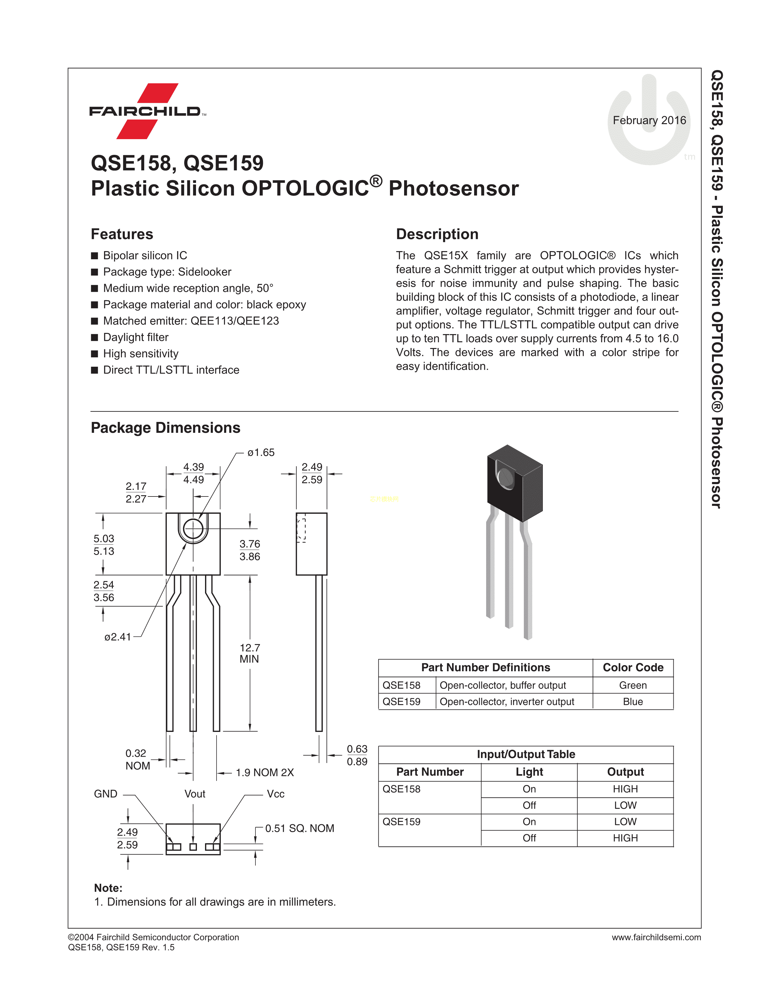 QSE159数据手册SideLooker封装onsemi(安森美)PDF规格书,中英文下载