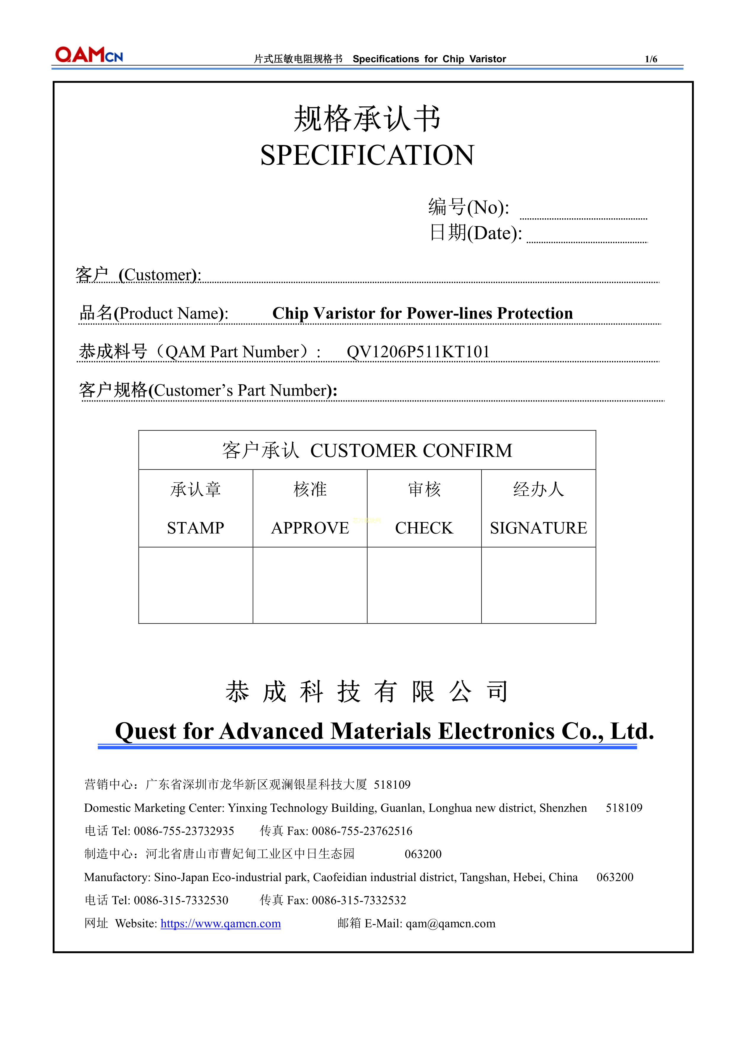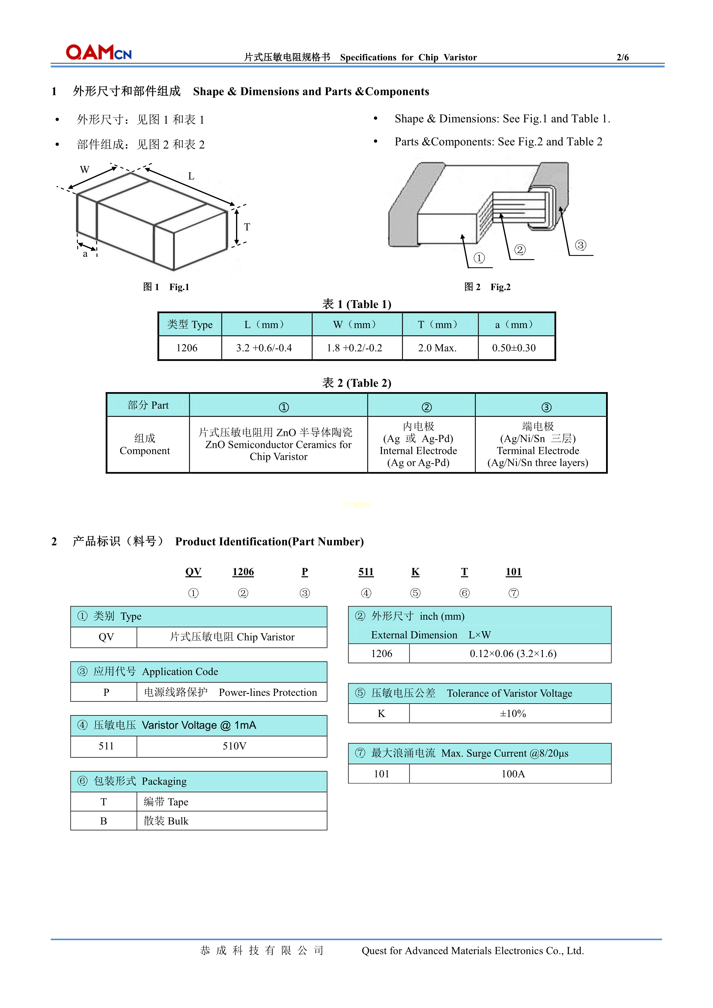 QV1206P511KT101数据手册SMD3.2x1.8x2mm封装QAMcn(恭成科技)PDF规