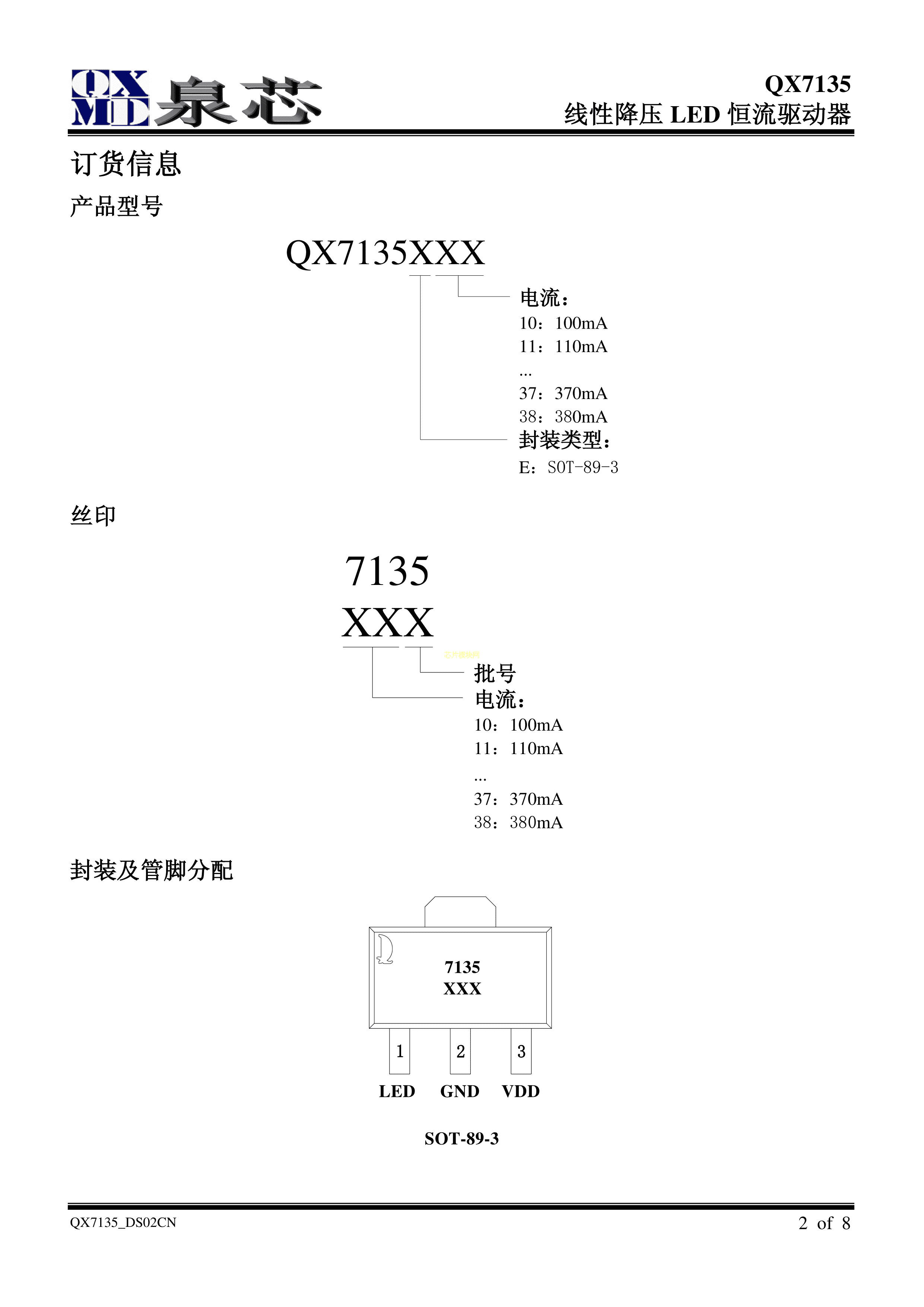 QX7135E14数据手册SOT-89(SOT-89-3)封装泉芯PDF规格书,中英文下载