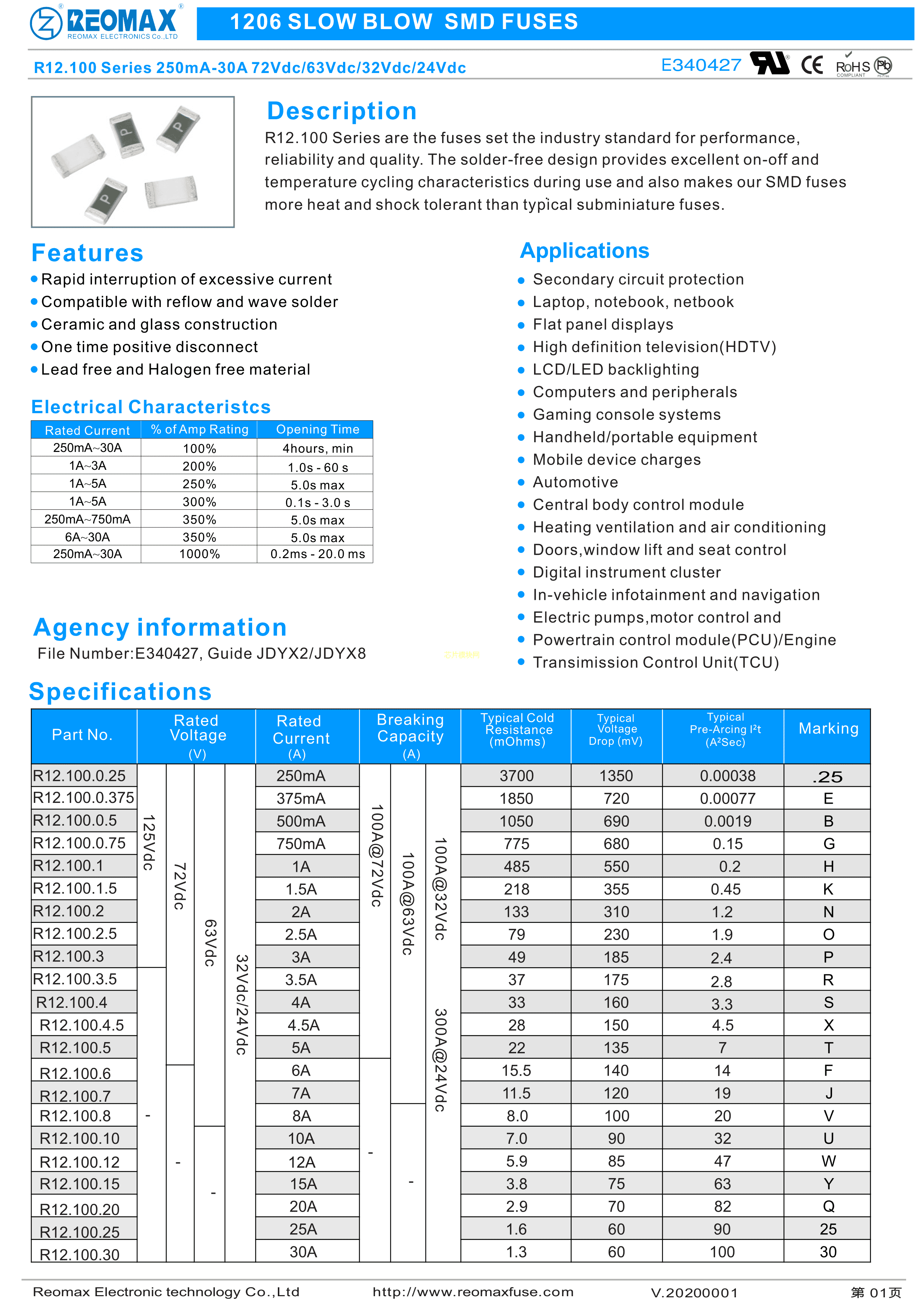 R12.100.4.5数据手册1206封装Reomax(瑞迈)PDF规格书,中英文下载