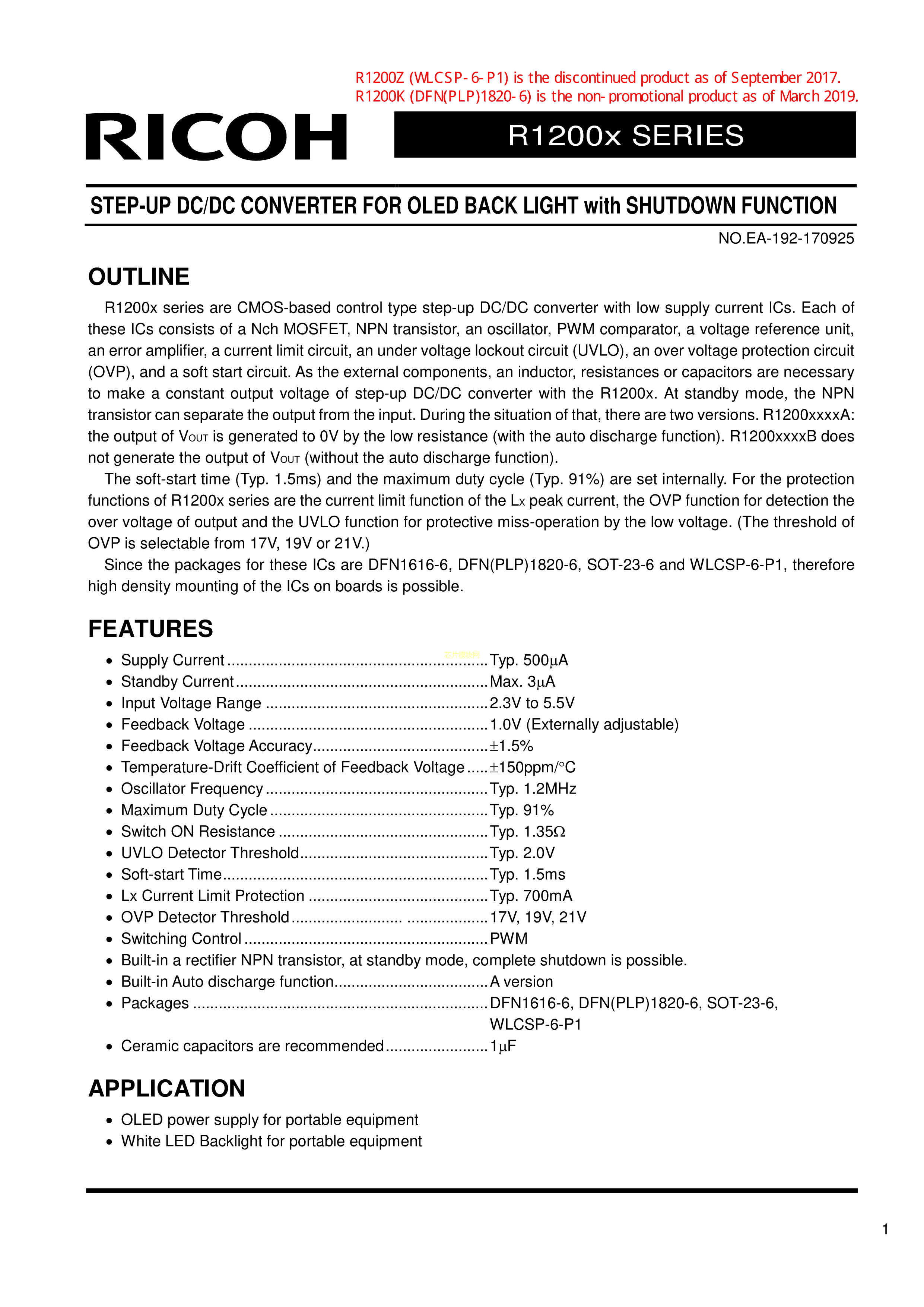 R1200N003B-TR-FE数据手册SOT-23-6封装RICOH(理光)PDF规格书,中英文下