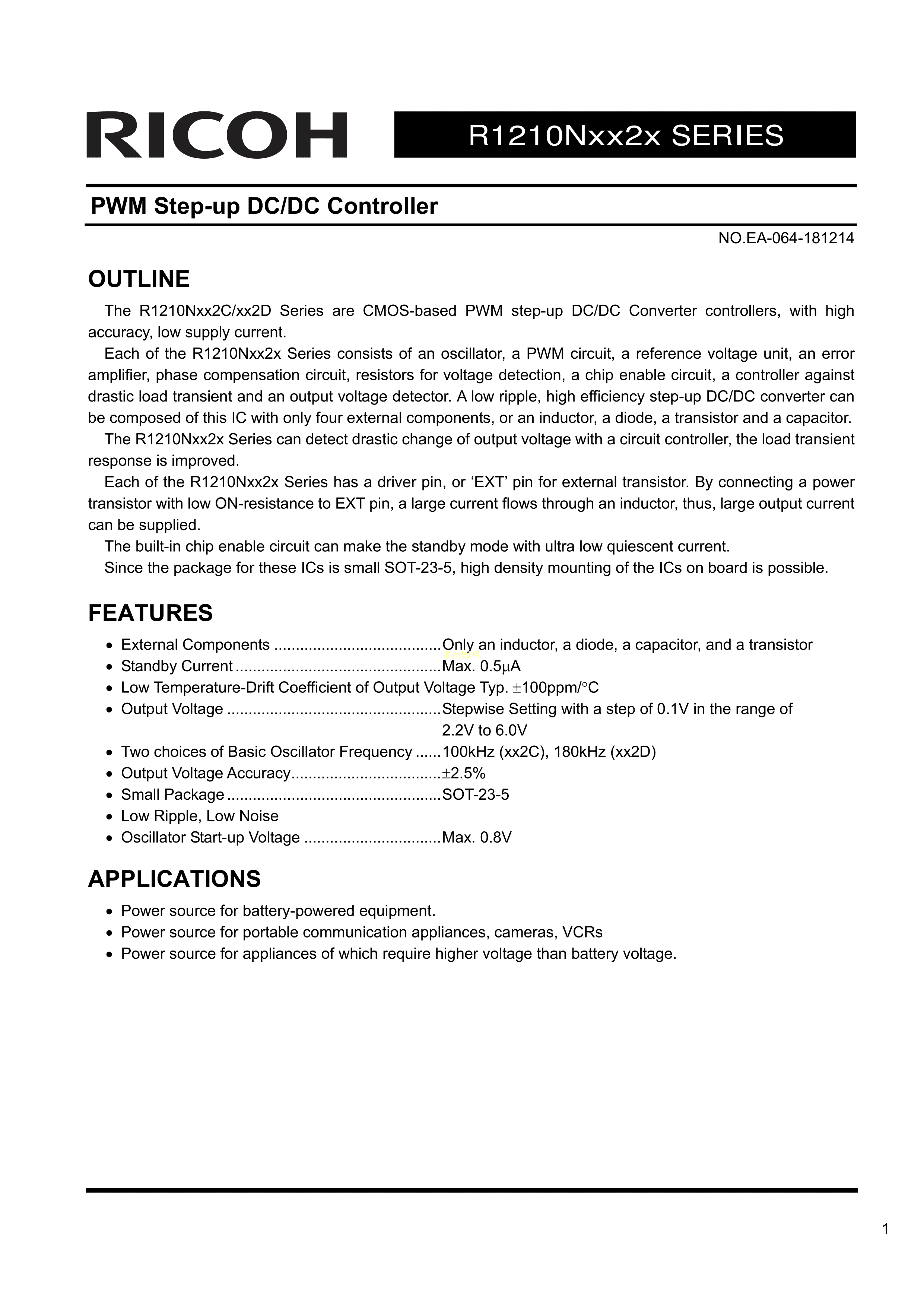 R1210N282C-TR-FE数据手册SOT-23-5封装RICOH(理光)PDF规格书,中英文下