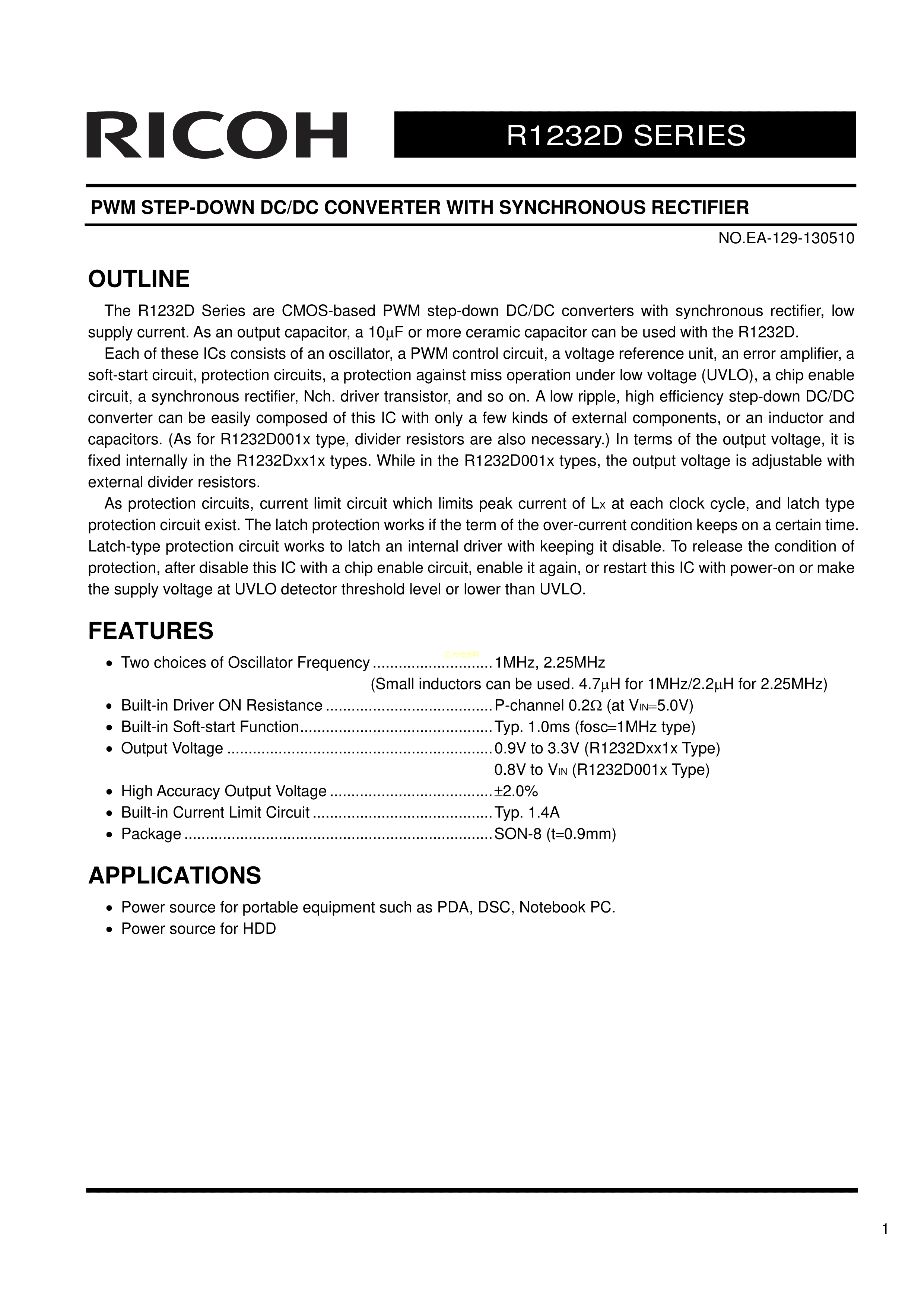 R1232D001C-TR-FE数据手册SON-8(2.9x2.8)封装RICOH(理光)PDF规格